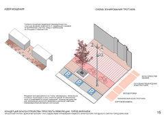 Современный проспект Революции – это сосредоточение транспортных потоков, многочисленных пешеходных маршрутов, а также место концентрации главных городских событий. Примыкающие к улице общественные пространства – площади и скверы, а также размещение на ней культурно-развлекательных и гастрономических заведений, делают ее не только транзитной, но и привлекательной для горожан и гостей Воронежа.