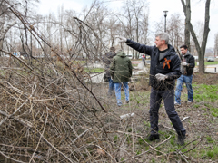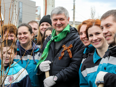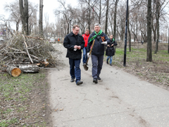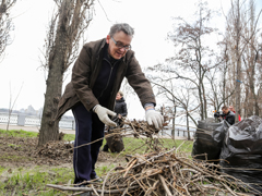 Руководитель управы Леонид Беляев в этот день не только проехал с инспекцией по всей территории района, но и принял непосредственно участие в уборке и посадке деревьев.