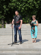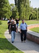 У стелы «Воронеж – город воинской славы» присутствующие почтили память погибших воинов и возложили цветы к Вечному огню. Затем контр-адмирал в отставке, краевед Николай Никифорович Титаренко ознакомил визитеров с экспозицией музея.
