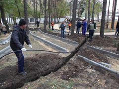 После проведения подготовительных работ подрядные организации и жители ТОС «Сосна» приступили к осуществлению первого этапа благоустройства парка, который будет завершен в ноябре.