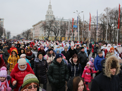 24 декабря в Воронеже прошёл традиционный парад Дедов Морозов и Снегурочек, в котором приняли участие более 150 пар.