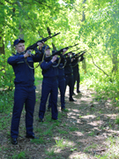 В память о погибших героях участники мероприятия возложили венки и цветы. Под залпы оружейного салюта военный оркестр исполнил гимн Российской Федерации, а почетный караул курсантов прошел торжественным маршем.