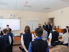 Вадим Кстенин осмотрел актовый и спортивный залы, столовую, медицинский кабинет. По словам Ольги Терновых, благодаря возведению пристройки у школы появился актовый зал на 240 человек (до этого торжественные мероприятия проводились в коридоре), а также пищеблок с современным оборудованием и дополнительный спортзал.