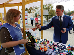 В течение дня в городе работают десятки площадок. Так, традиционно у входа в Кольцовский сквер развернулась выставка-ярмарка по сбору средств на лечение онкобольных детей «Белый цветок» в рамках «Недели добра и милосердия». Глава Воронежа Вадим Кстенин посетил это благотворительное мероприятие и приобрел сувениры и цветок.