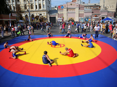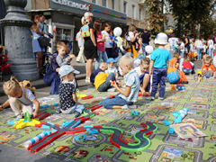 На протяжении всей концертной программы для детей работали игровые площадки, подготовленные воспитанниками центра развития творчества детей и юношества «Крылатый». К примеру, на одной из площадок нужно было поучаствовать в эстафетах на скорость и ловкость, на другой - попробовать сохранить баланс и пронести на голове книгу, а на остальных – продемонстрировать умение бросать кольца и прыгать на скакалке. Не остались в стороне и любители «пошевелить извилинами», для них организаторами мероприятия было заготовлено несколько интеллектуальных викторин. За выполнение увлекательных творческих заданий все маленькие участники празднования Дня города получили полезные призы.