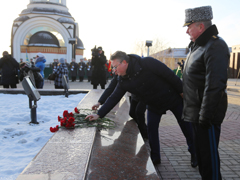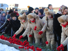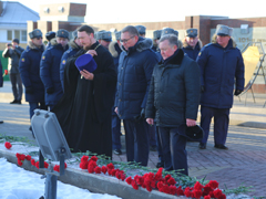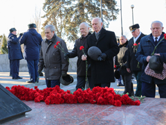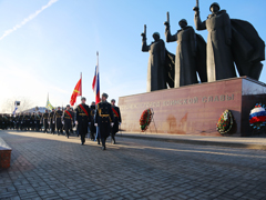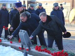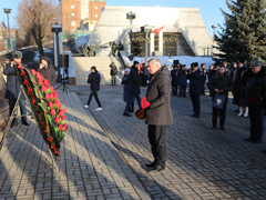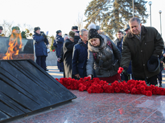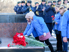 Участники церемонии почтили память погибших защитников города минутой молчания, а после возложили к мемориальному комплексу цветы и венки.