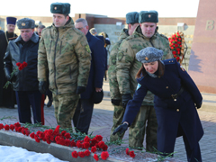 В завершение церемонии духовой оркестр Военно-воздушной академии исполнил торжественный марш, под который строем прошел почетный караул. Участников события пригласили посетить обзорную экскурсию в Зале Памяти мемориального комплекса.