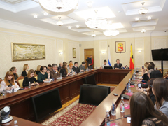 Затем речь зашла о подготовке к празднованию 75-летия Великой Победы. Вадим Юрьевич рассказал, что по традиции в Воронеже состоится шествие «Бессмертного полка» и парад военной техники, которой в этом году будет гораздо больше, чем в прошлом. Большое внимание уделено и праздничному оформлению города.