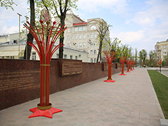 Кроме того, городским управлением культуры был проработан вопрос обновления информационной таблицы, содержащей данные об уроженцах Воронежа, участниках Великой Отечественной войны – Героях Советского Союза и полных кавалерах Орденов Славы. Работы здесь полностью завершены. Буквы резные, украшения выполнены литьем. Кстати, при реконструкции учли и то, что раньше отдельные буквы в надписях повреждались от погодных или механических воздействий. Теперь этот вопрос решен — элементы «посажены на ножки», а не закреплены вплотную к стене для снижения, например, нагрузки воды при дожде или перепадах температур. Этот прием, кроме того, сделал надпись объёмнее.