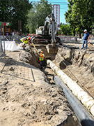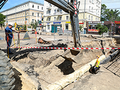 Напомним, что движение на участке проспекта от улицы Степана Разина до улицы Карла Маркса закрыто в связи с проводимыми работами с 0:00 1 июня до 23:59 20 июня. Теплоснабжающая организация ведёт замену тепловых сетей в трёх местах – у дома №58 («Утюжок»), а также в районе пересечений с улицами 25 Октября и Пятницкого. О ходе работ на коммуникациях Сергею Петрину доложил представитель ПАО «Квадра – Генерирующая компания». По его словам, на всех трех участках уже до конца недели должны быть полностью завершены работы по монтажу новых труб, устройству перекрытий и лотков, после чего можно будет приступать к засыпке разрытия и устройству конструктива.