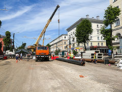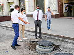 Что касается дорожного ремонта, то как доложил руководитель управления дорожного хозяйства Олег Котов, на большей части участка – там, где не ведутся работы тепслоснабжающей организацией - уже уложен выравнивающий слой асфальтобетона, в настоящее время ведутся работы по высотному регулированию люков смотровых колодцев и демонтажу бортового камня.