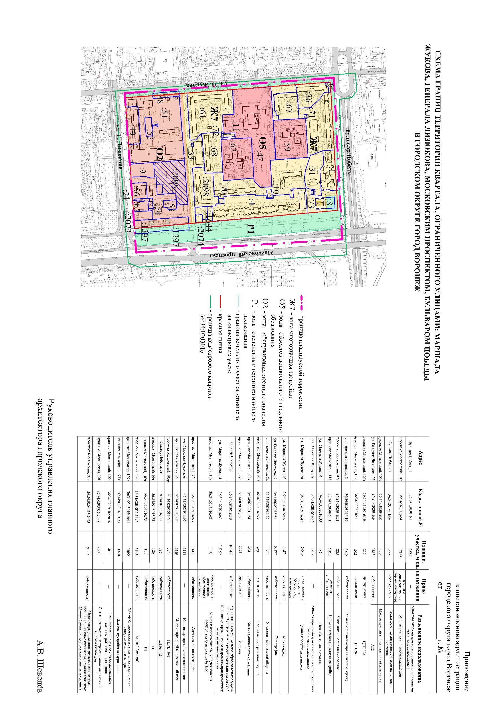2.1. Подготовить в соответствии с утвержденным заданием, указанным в пункте 1 настоящего постановления, проект планировки территории квартала, ограниченного улицами: Маршала Жукова, Генерала Лизюкова, Московским проспектом, бульваром Победы в городском округе город Воронеж, согласно прилагаемой схеме.