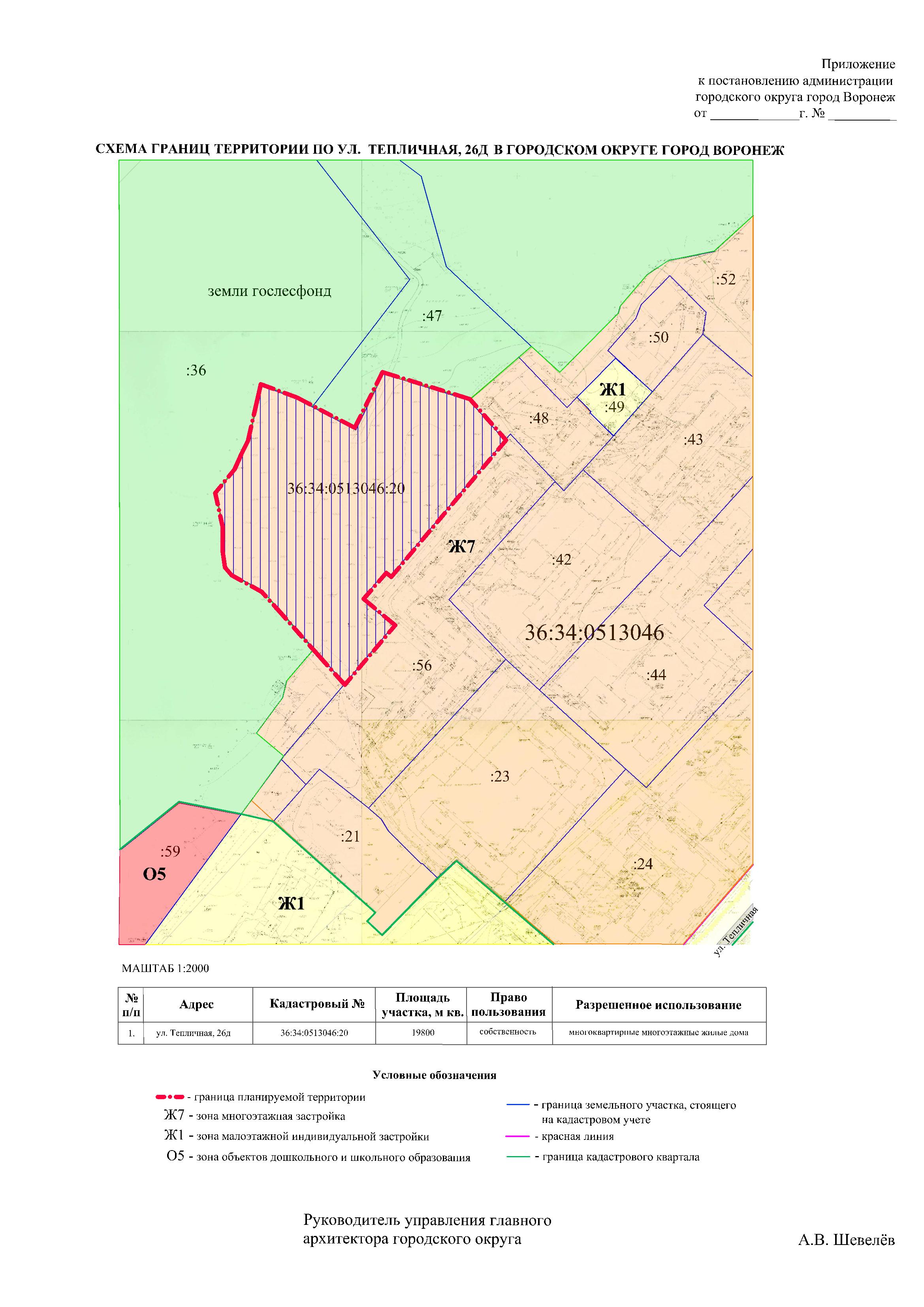 2.1. Подготовить в соответствии с утвержденным заданием, указанным в пункте 1 настоящего постановления, документацию по планировке территории по ул. Тепличная, 26д в городском округе город Воронеж согласно прилагаемой схеме.