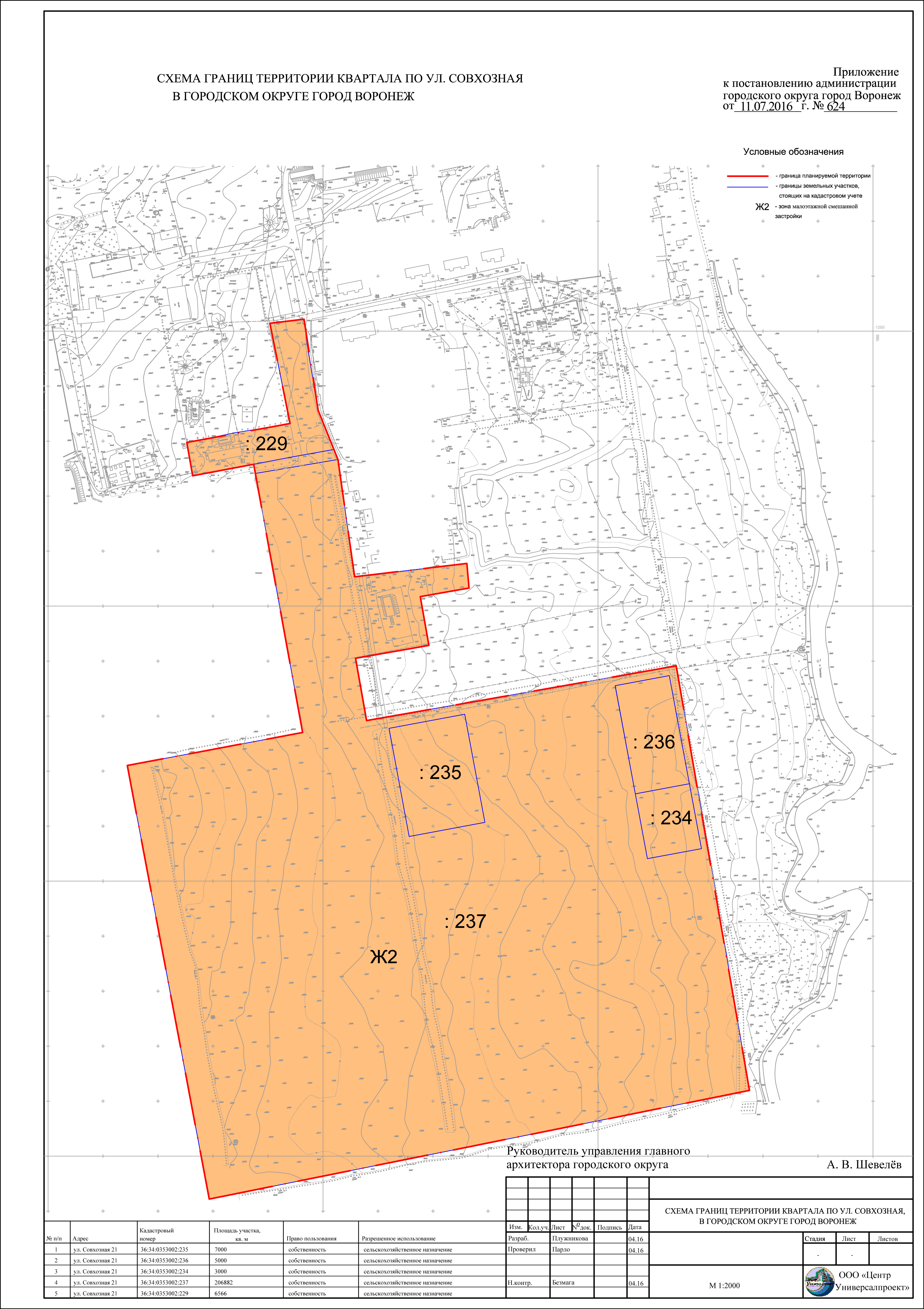 2.1. Подготовить в соответствии с утвержденным заданием, указанным в пункте 1 настоящего постановления, документацию по планировке территории квартала по ул. Совхозная в городском округе город Воронеж согласно прилагаемой схеме.