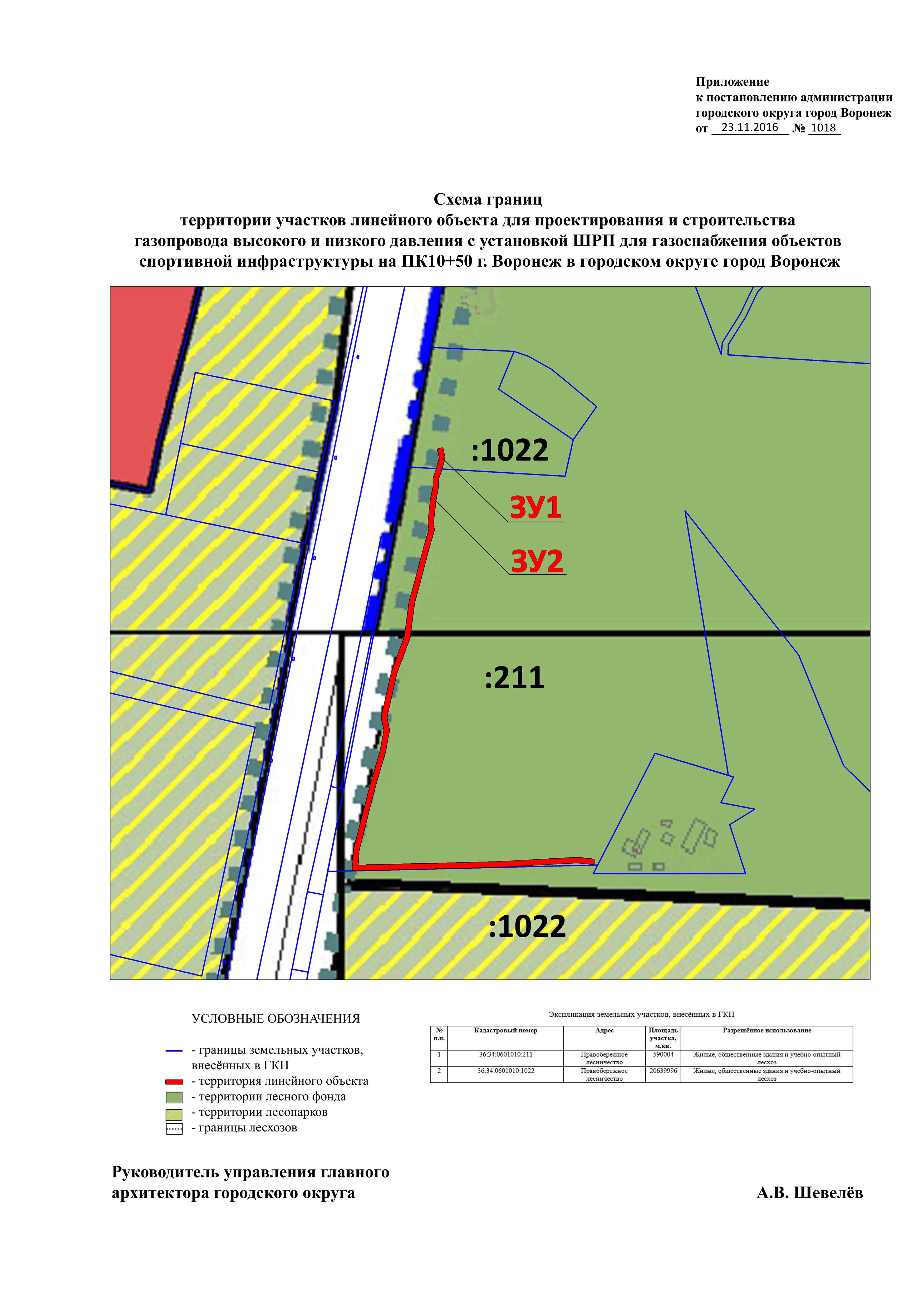 2.1. Подготовить в соответствии с утвержденным заданием документацию по планировке территории участков линейного объекта для проектирования и строительства газопровода высокого и низкого давления с установкой ШРП для газоснабжения объектов спортивной инфраструктуры на ПК10+50 г. Воронеж в городском округе город Воронеж согласно прилагаемой схеме.