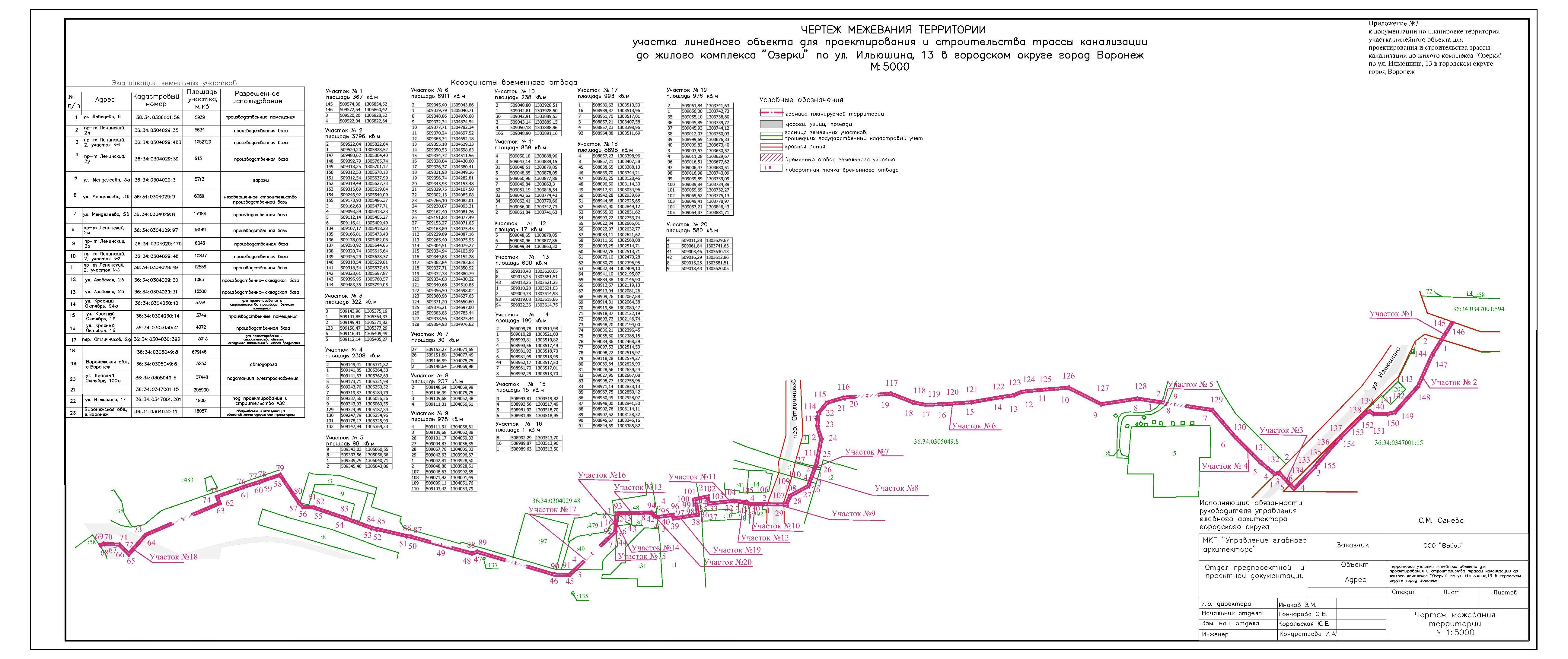 5. Утвердить прилагаемый состав рабочей группы по организации и проведению публичных слушаний по проекту планировки территории и проекту межевания территории, подготовленным в составе документации по планировке территории участка линейного объекта для проектирования и строительства трассы канализации до жилого комплекса «Озерки» по ул. Ильюшина, 13 в городском округе город Воронеж (далее – Рабочая группа).