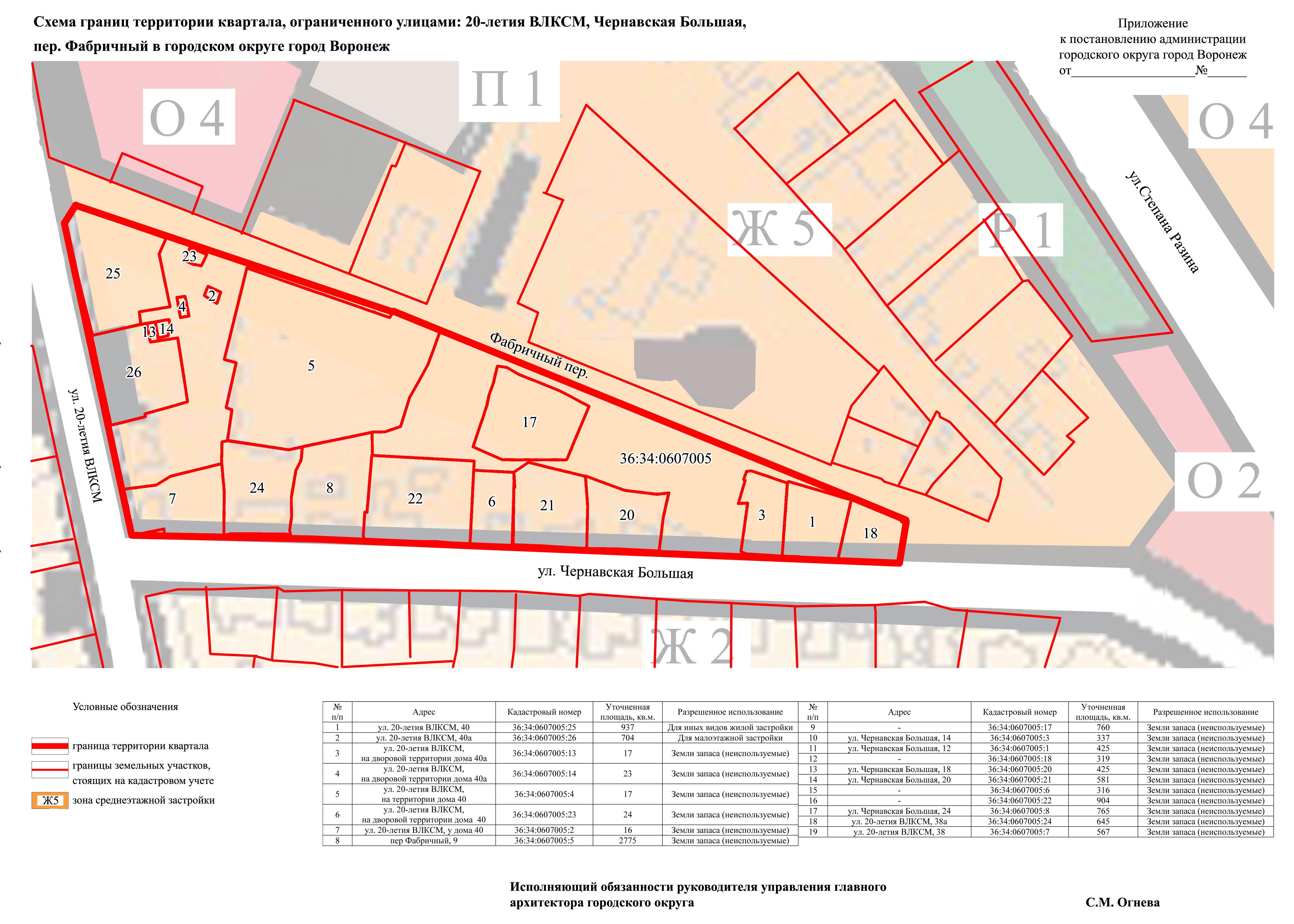 2.1. Подготовить в соответствии с утвержденным заданием, указанным в пункте 1 настоящего постановления, проект планировки территории квартала, ограниченного улицами: 20-летия ВЛКСМ, Чернавская Большая, пер. Фабричный в городском округе город Воронеж, согласно прилагаемой схеме.