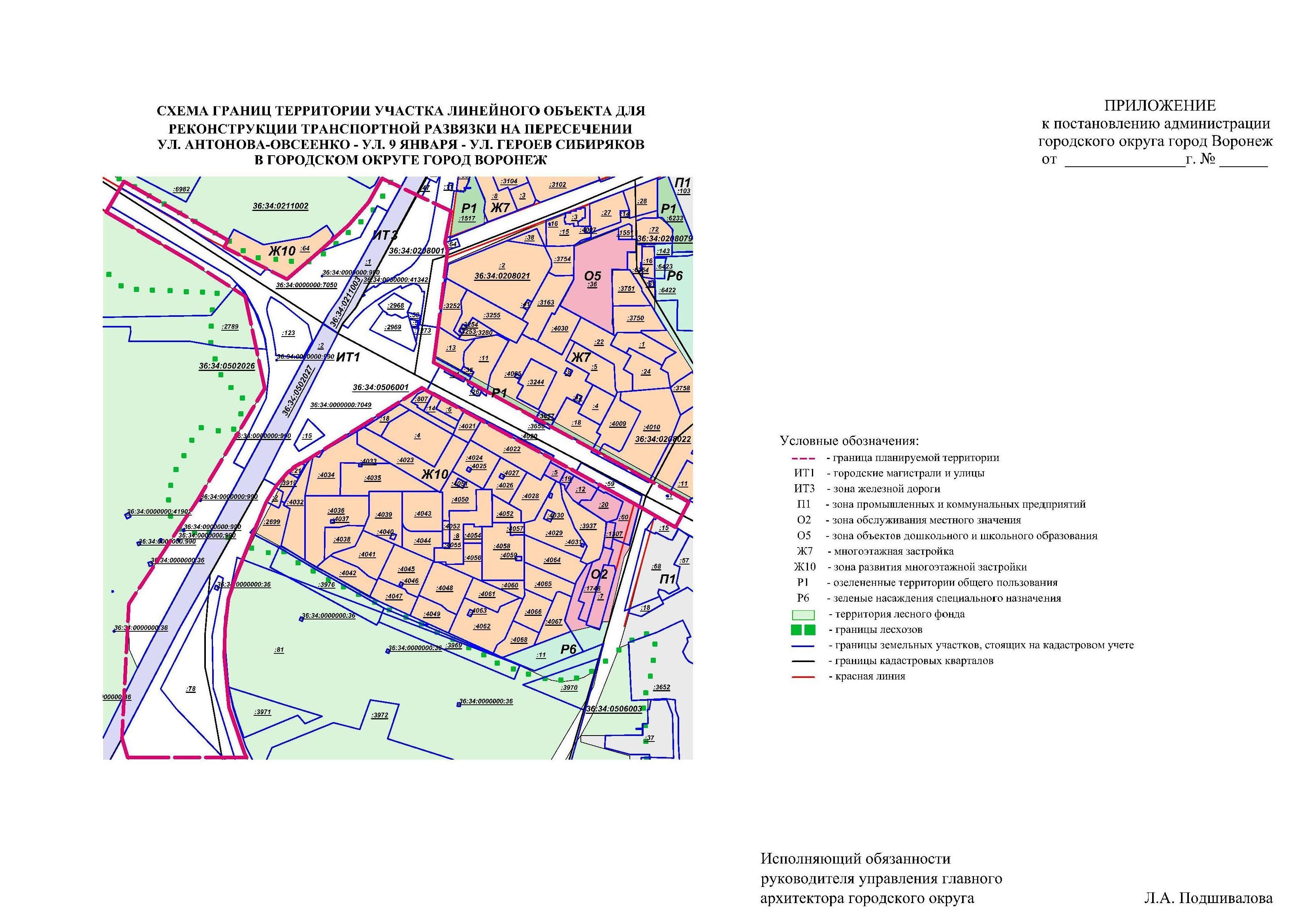 2.1. Подготовить в соответствии с утвержденным заданием документацию по планировке территории участка линейного объекта для реконструкции транспортной развязки на пересечении ул. Антонова-Овсеенко – ул. 9 Января – ул. Героев Сибиряков в городском округе город Воронеж согласно прилагаемой схеме.