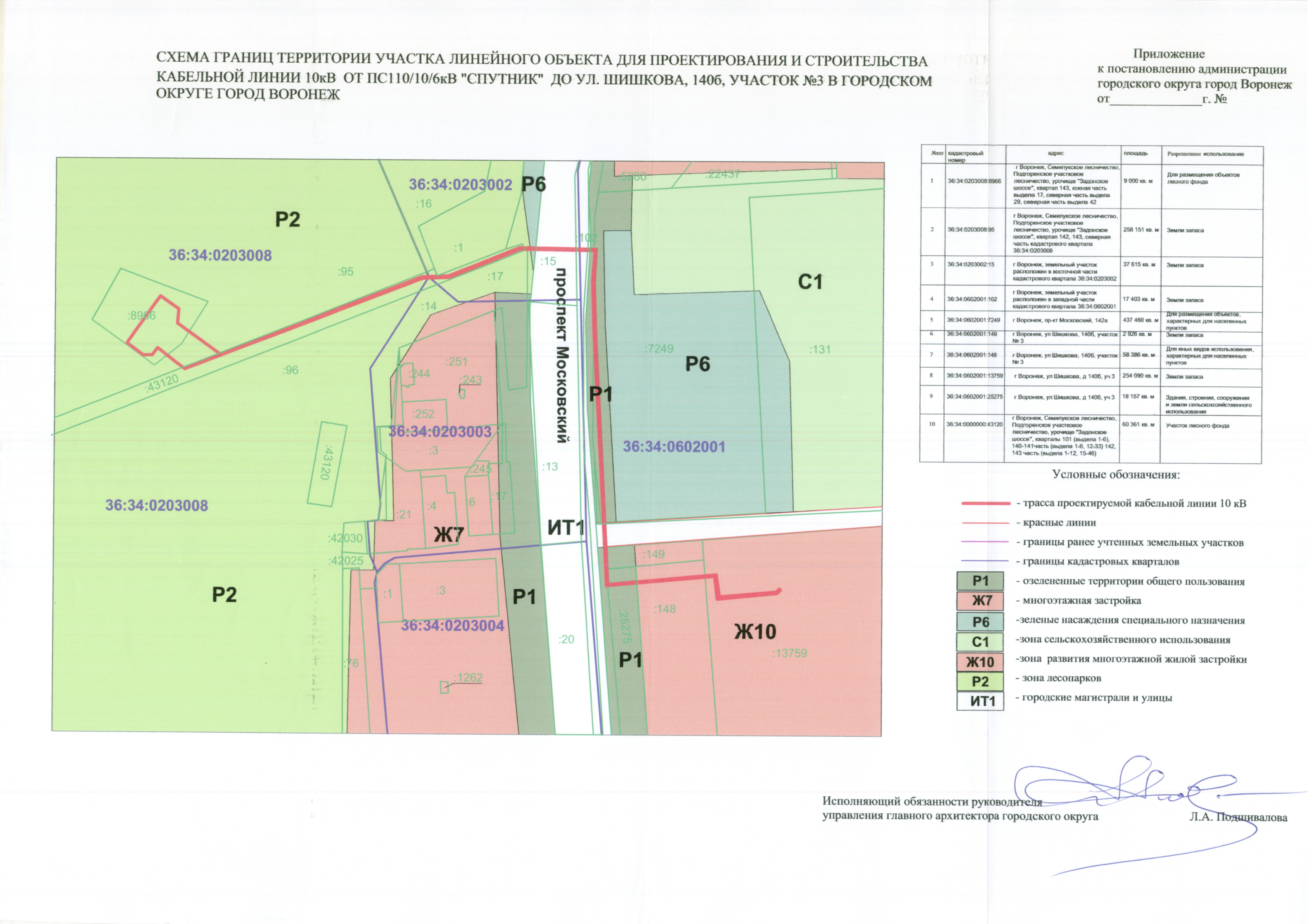 2.1. Подготовить в соответствии с утвержденным заданием документацию по планировке территории участка линейного объекта для проектирования и строительства кабельной линии 10 кВ от ПС 110/10/6 кВ «Спутник» до ул. Шишкова, 140б, участок № 3 в городском округе город Воронеж согласно прилагаемой схеме.