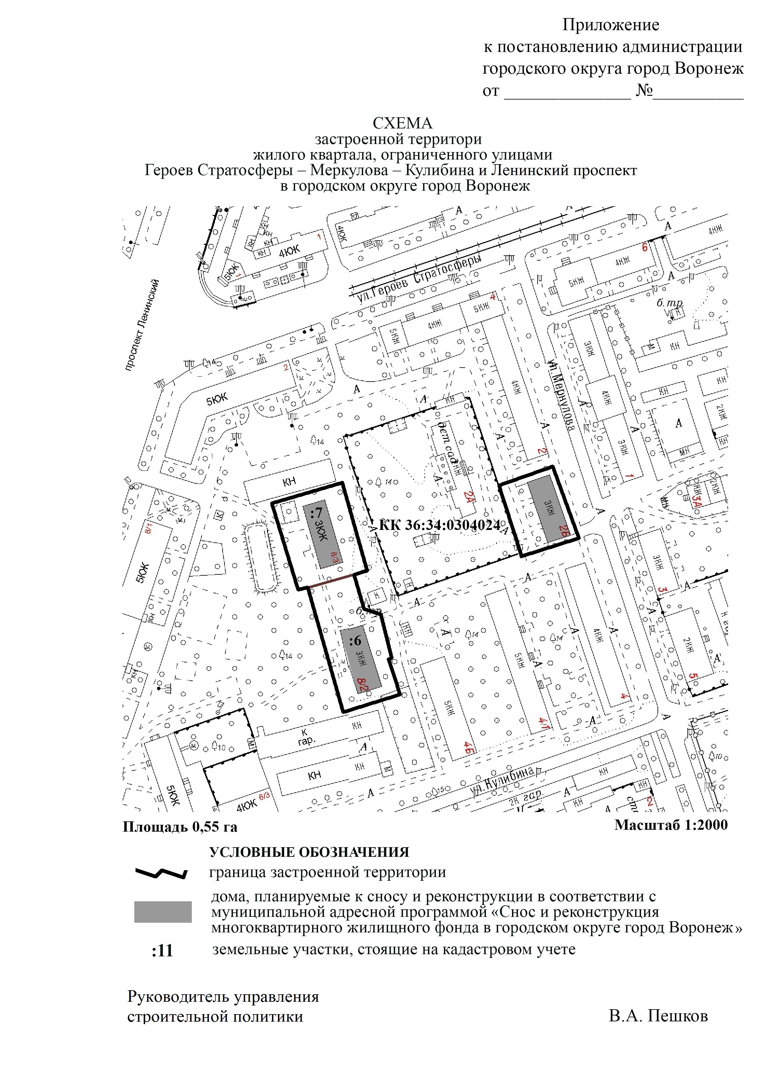 улицами Героев Стратосферы – Меркулова – Кулибина и Ленинский проспект в городском округе город Воронеж