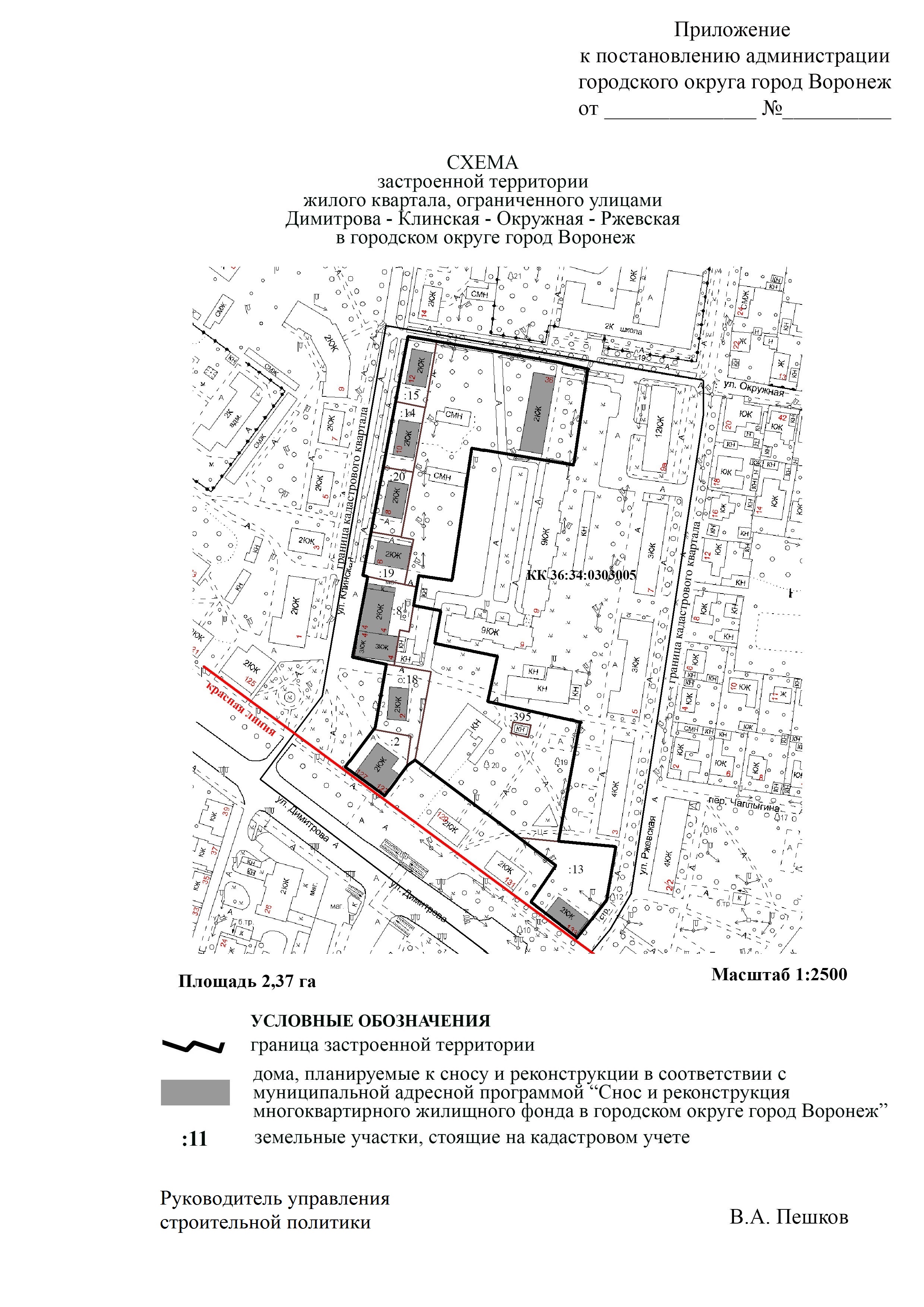 1. Принять решение о развитии застроенной территории жилого квартала, ограниченного улицами Димитрова – Клинская – Окружная – Ржевская в городском округе город Воронеж, ориентировочной площадью 2,37 га согласно схеме (приложение к настоящему постановлению) в соответствии с градостроительным регламентом Ж 8, установленным Правилами землепользования и застройки городского округа город Воронеж.