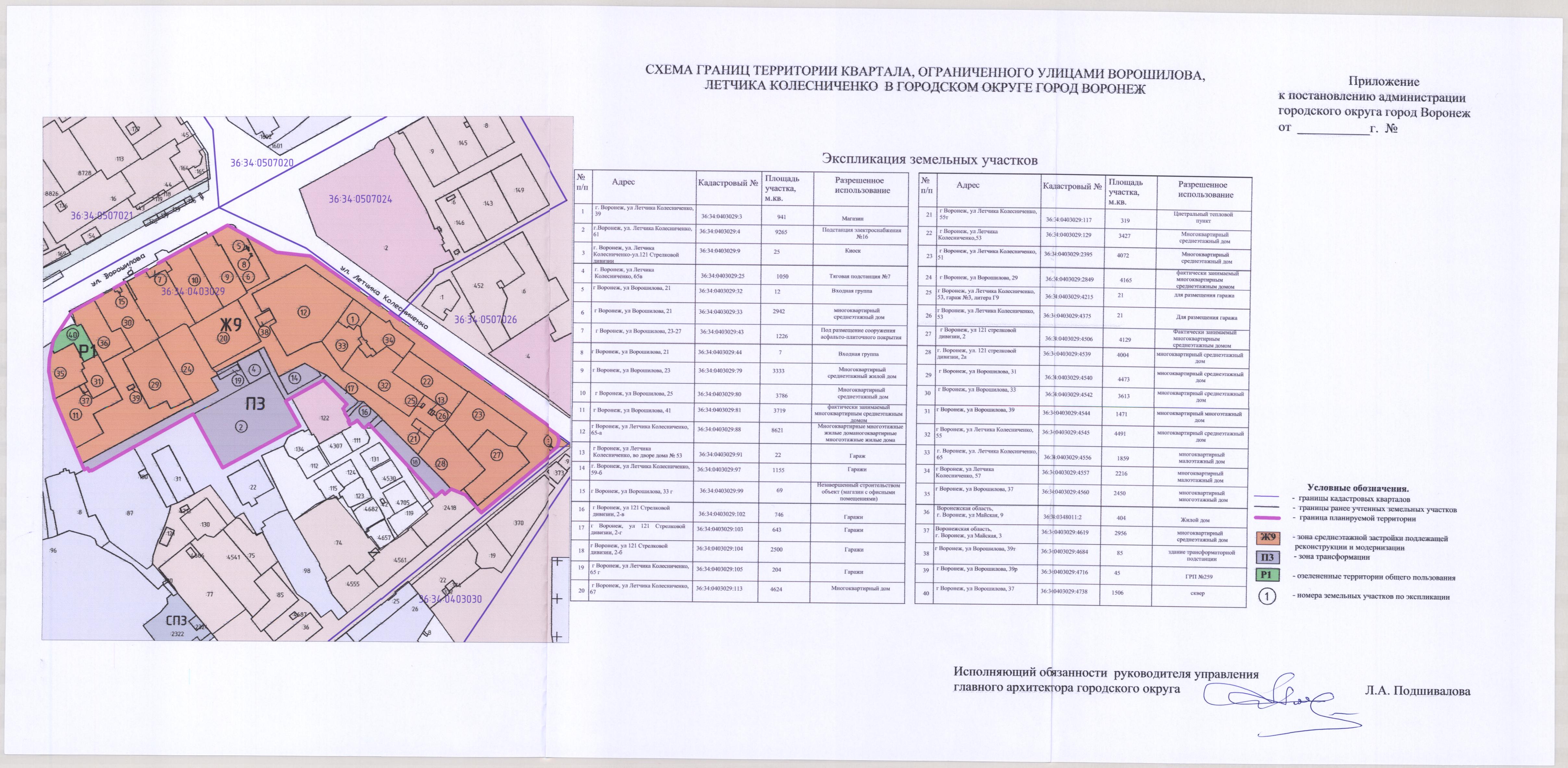 2.1. Подготовить в соответствии с утвержденным заданием, указанным в пункте 1 настоящего постановления, проект планировки территории квартала, ограниченного улицами Ворошилова, Летчика Колесниченко в городском округе город Воронеж, согласно прилагаемой схеме.