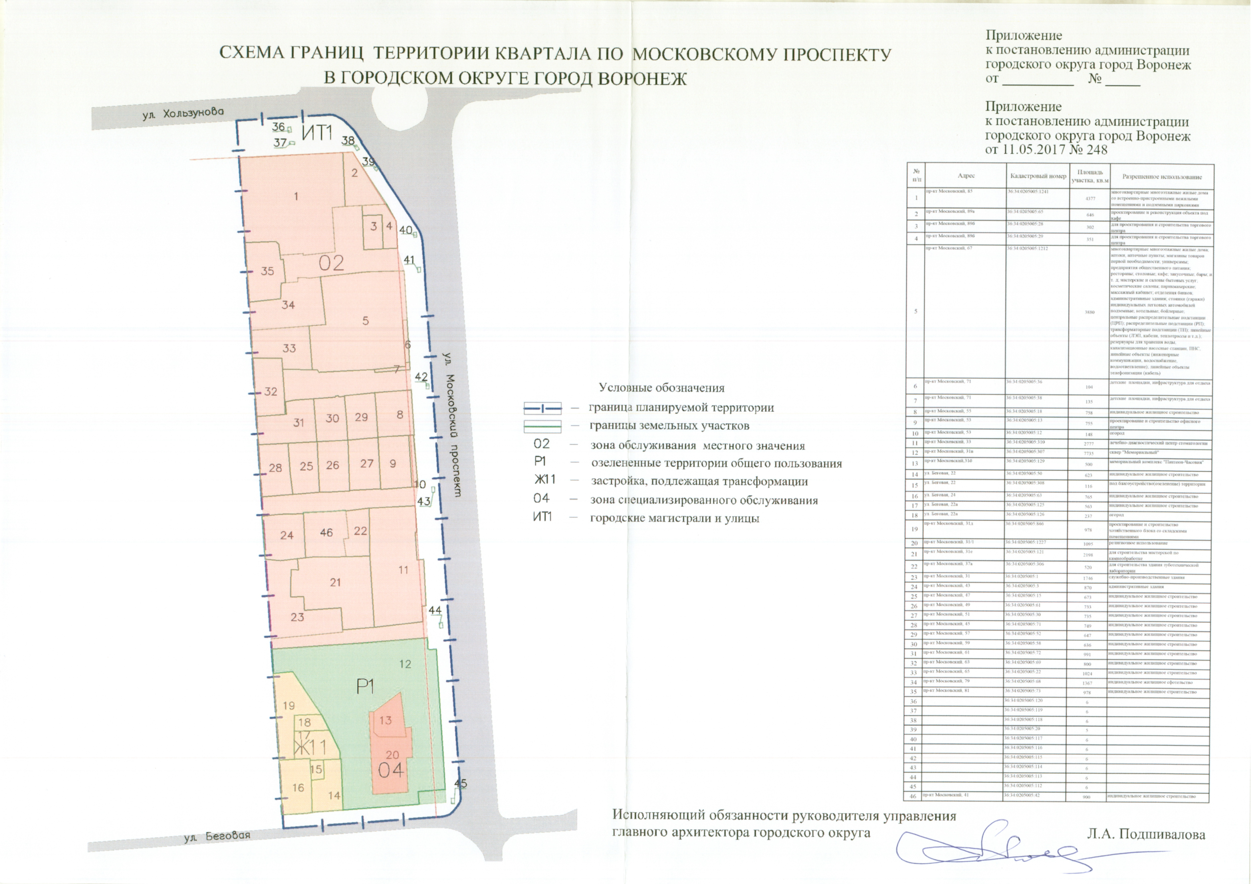 приложение к постановлению «Схема границ территории квартала по Московскому проспекту в городском округе город Воронеж» изложить в новой редакции согласно приложению к настоящему постановлению.