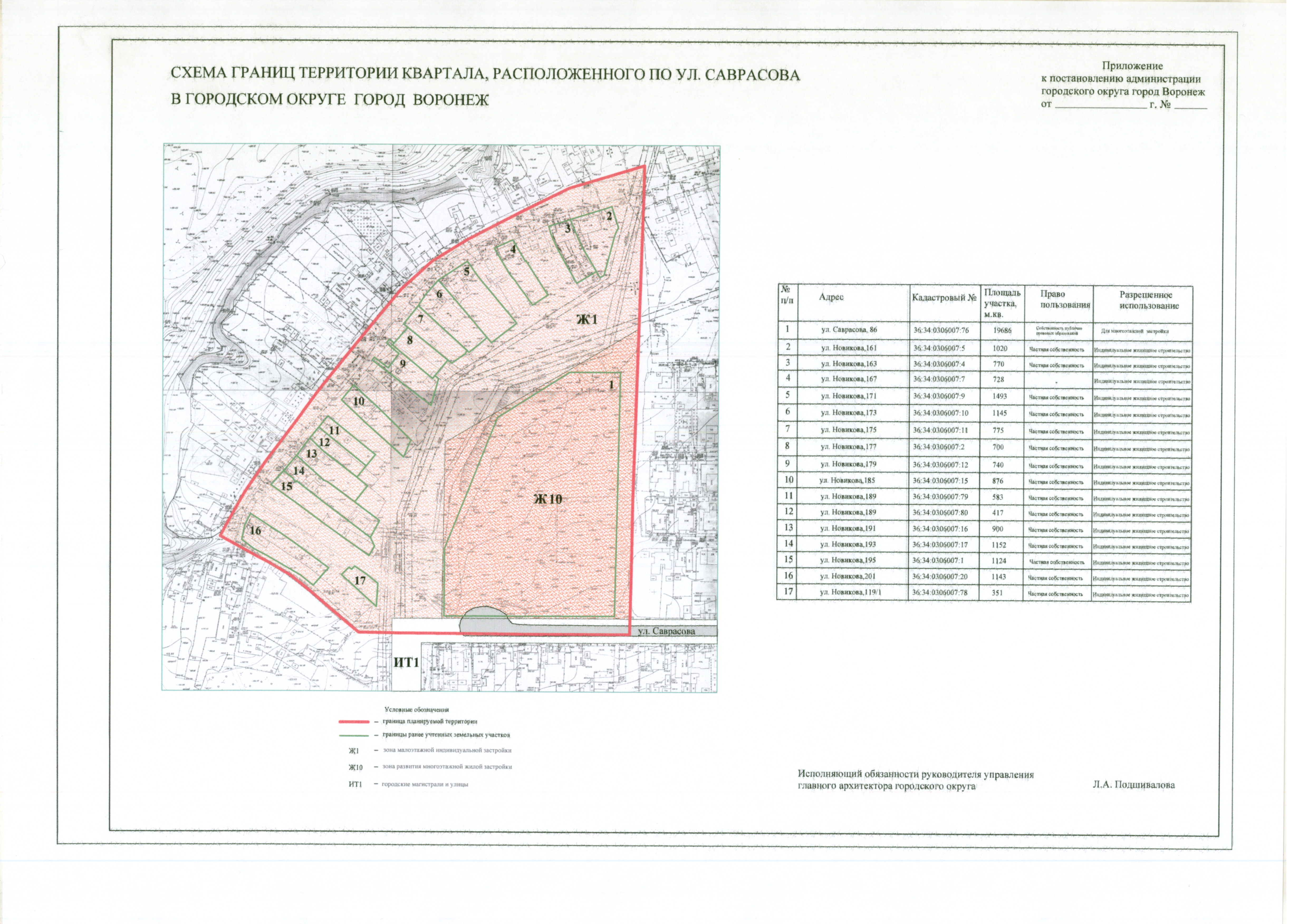 2.1 Подготовить в соответствии с утвержденным заданием, указанным в пункте 1 настоящего постановления, проект планировки территории квартала, расположенного по ул. Саврасова в городском округе город Воронеж, согласно прилагаемой схеме.