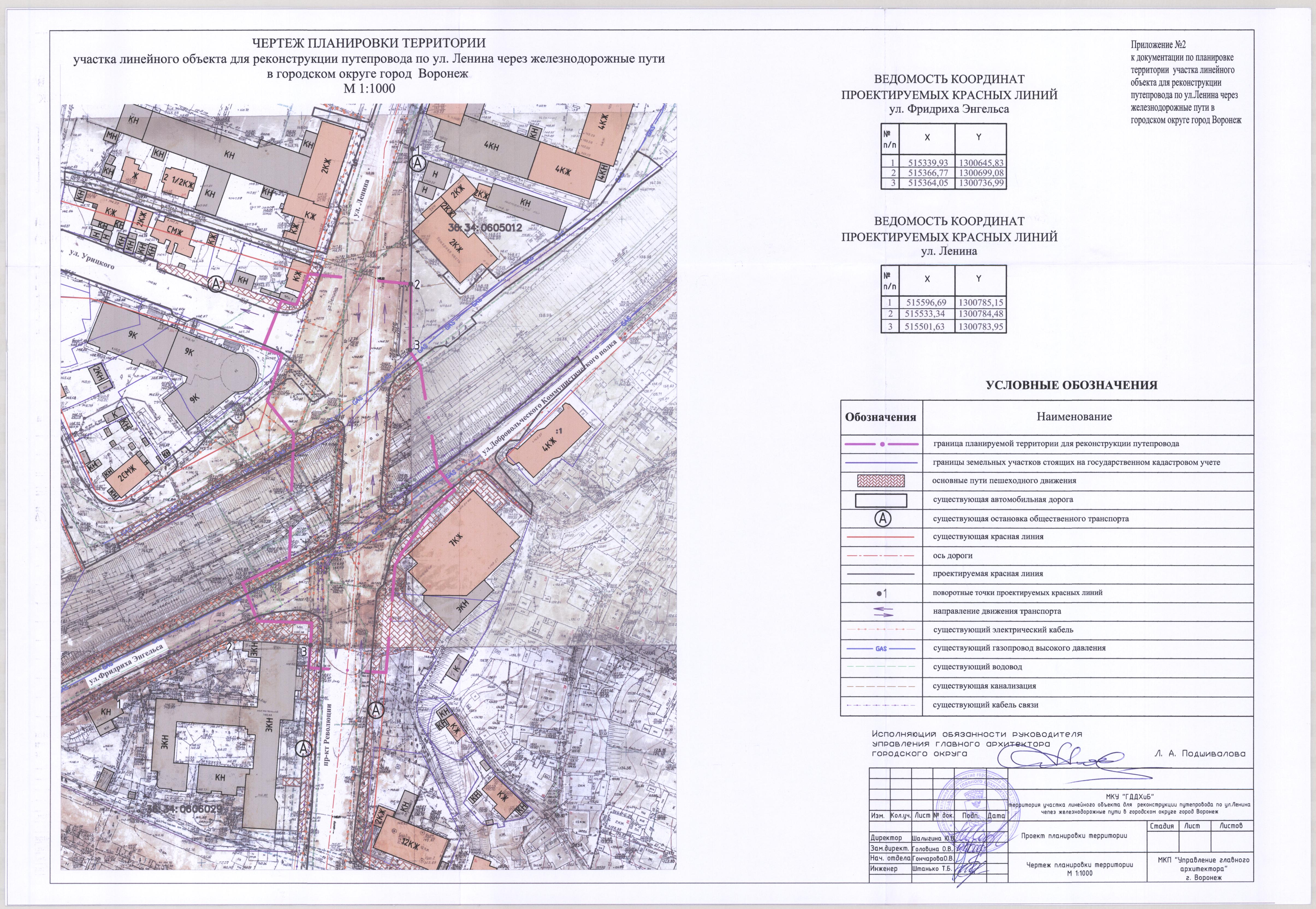 В целях реализации Генерального плана городского округа город Воронеж, утвержденного решением Воронежской городской Думы от 19.12.2008 № 422-II «Об утверждении Генерального плана городского округа город Воронеж», постановления администрации городского округа город Воронеж от 17.08.2017 № 447 «О подготовке документации по планировке территории участка линейного объекта для реконструкции путепровода по ул. Ленина через железнодорожные пути в городском округе город Воронеж», на основании заявления муниципального казенного учреждения городского округа город Воронеж «Городская дирекция дорожного хозяйства и благоустройства» (ИНН 3666154383), решения Воронежской городской Думы от 08.07.2011 № 501-III «О порядке подготовки документации по планировке территории, разрабатываемой на основании решений органов местного самоуправления городского округа город Воронеж», Правил землепользования и застройки городского округа город Воронеж, утвержденных решением Воронежской городской Думы от 25.12.2009 № 384-II «Об утверждении