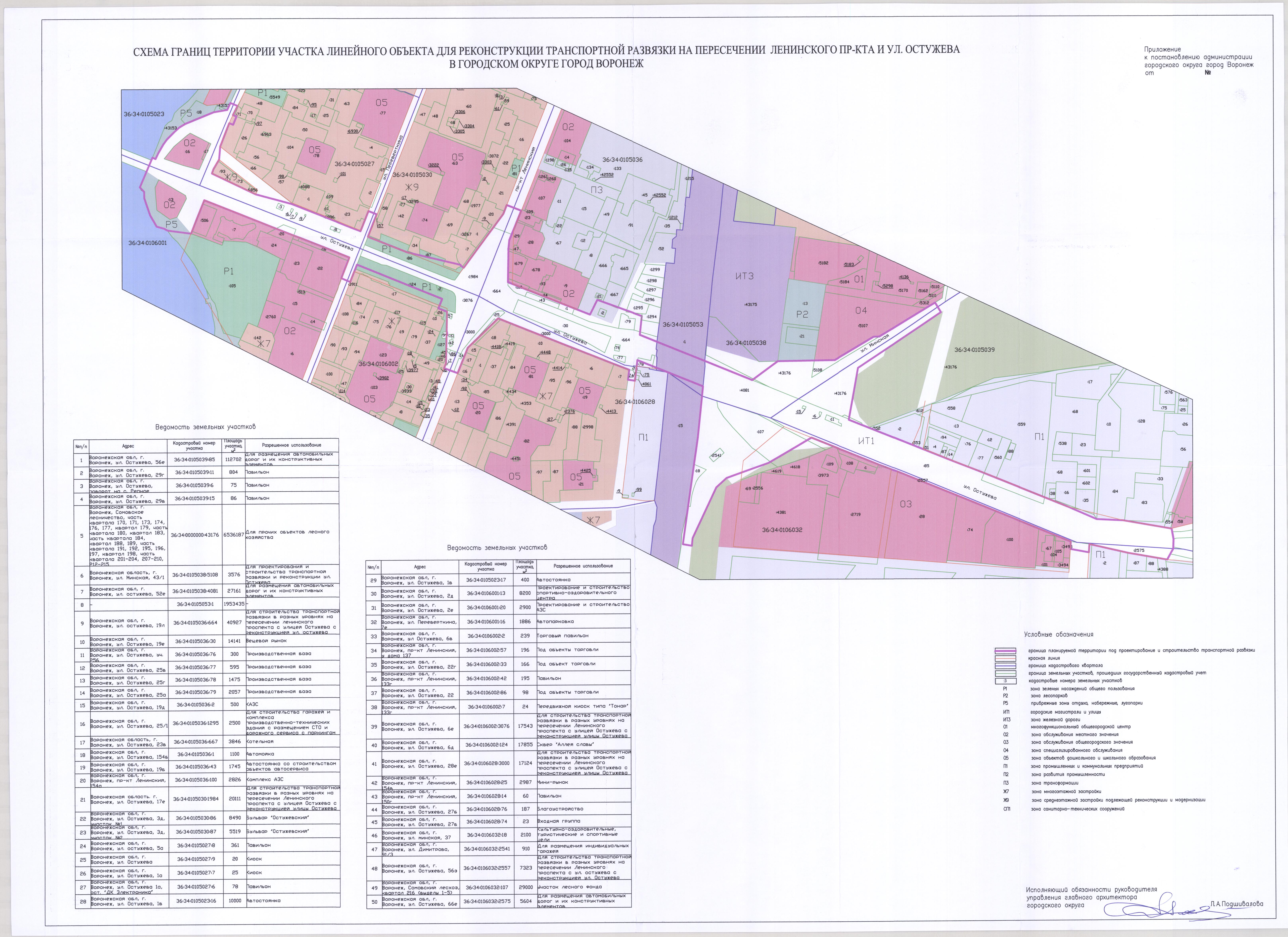 2.2. Обеспечить подготовку в соответствии с утвержденным заданием документации по планировке территории участка линейного объекта для реконструкции транспортной развязки на пересечении Ленинского пр-кта и ул. Остужева в городском округе город Воронеж согласно прилагаемой схеме.