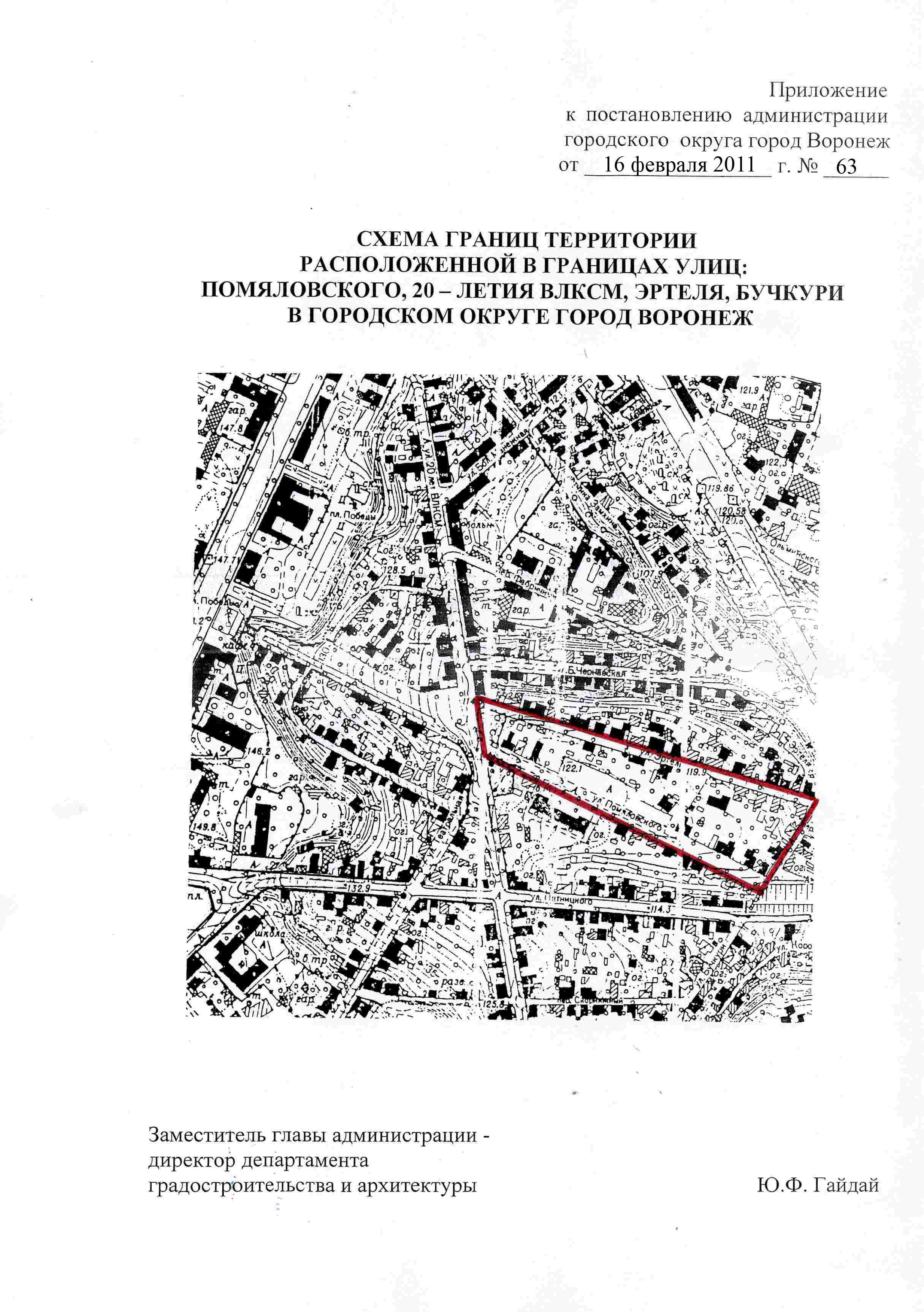 1.1. Подготовить проект планировки территории, расположенной в границах улиц Помяловского, 20-летия ВЛКСМ, Эртеля, Бучкури городского округа город Воронеж, согласно прилагаемой схеме;
