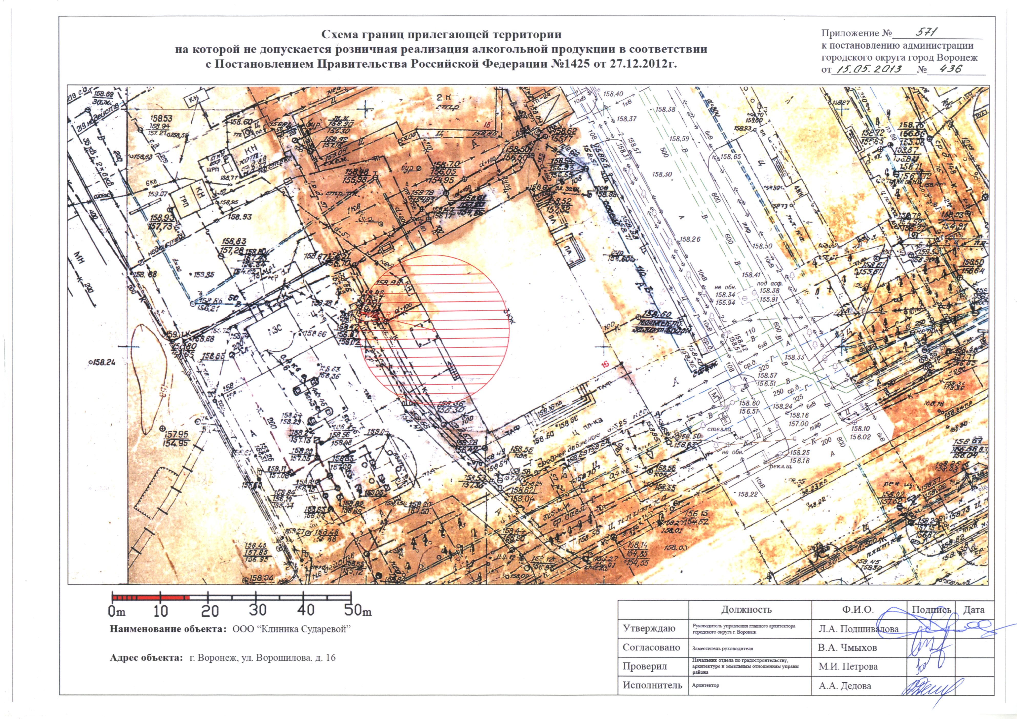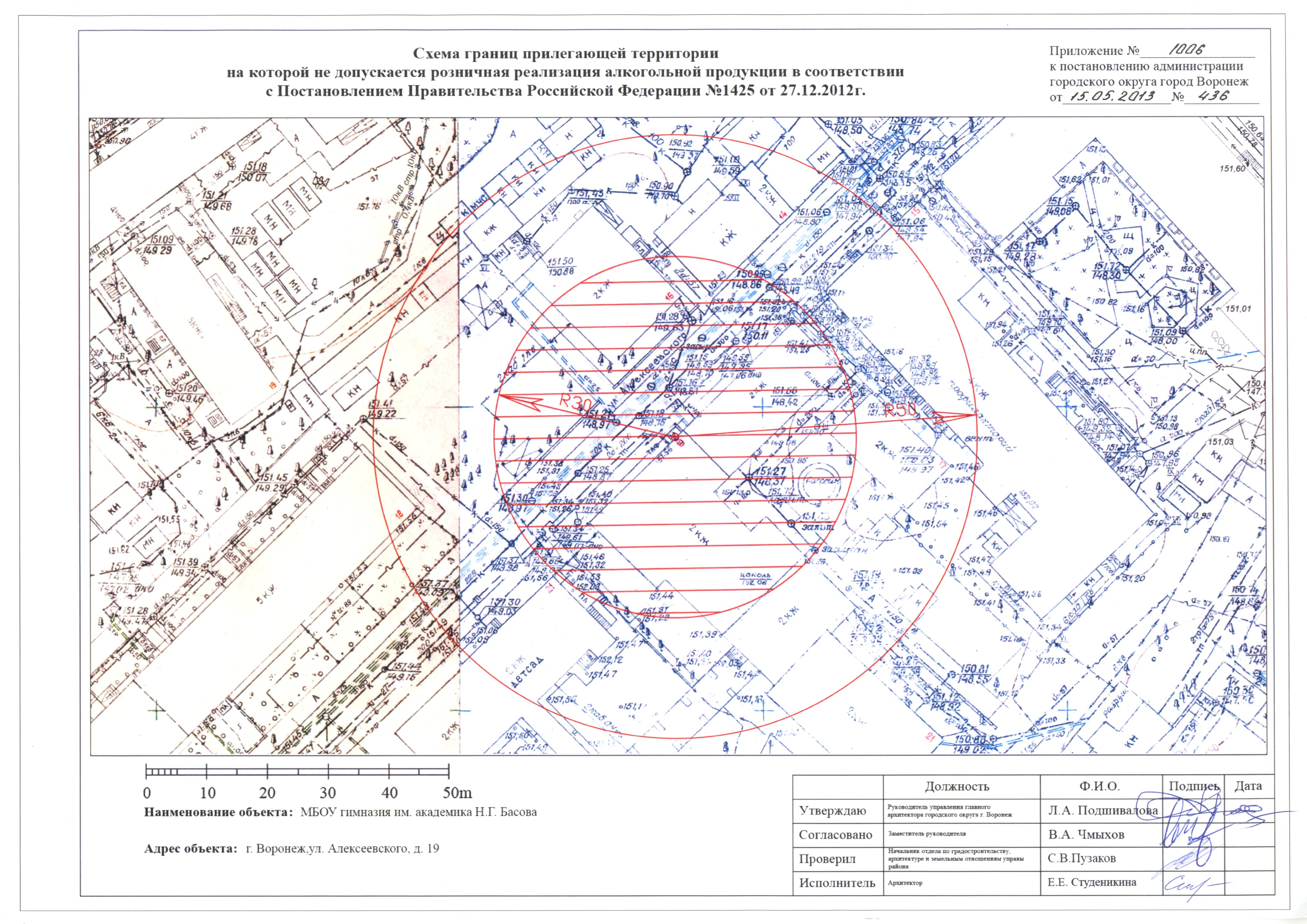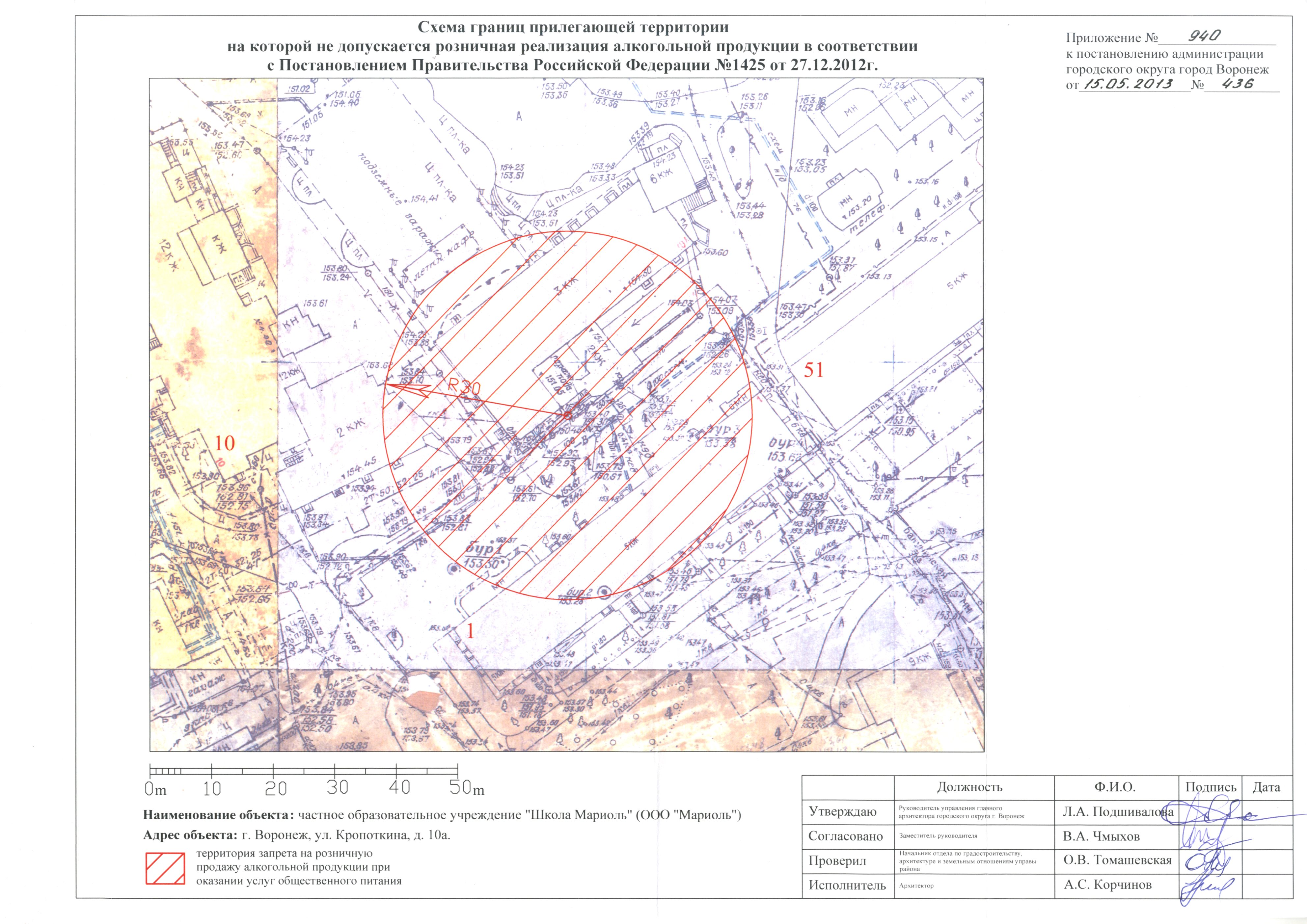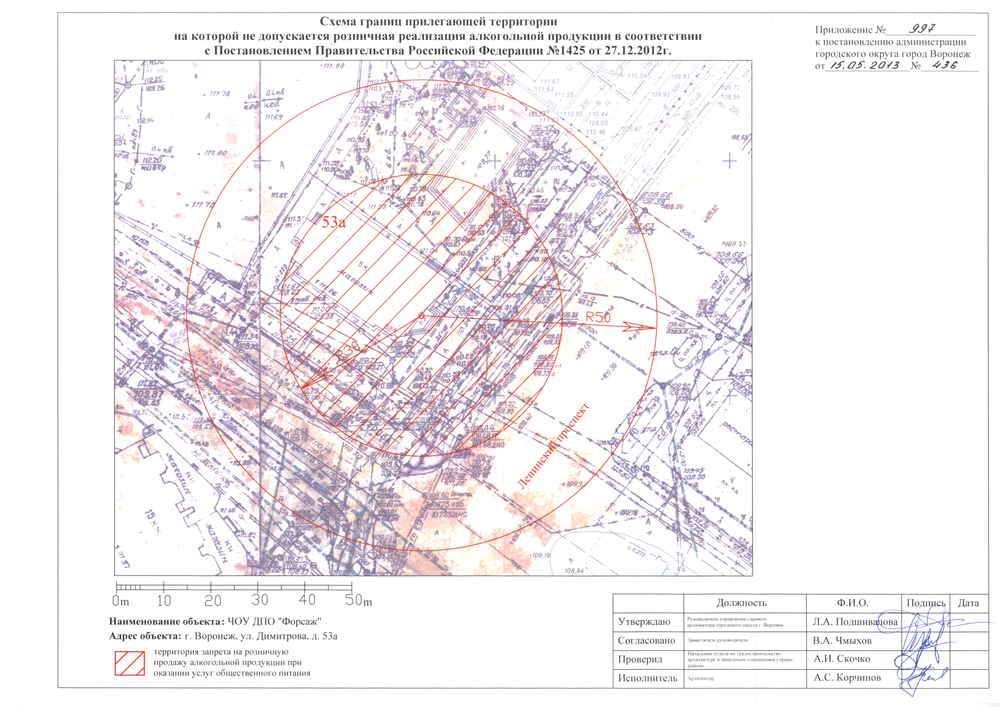 Во исполнение статьи 16 Федерального закона от 22.11.1995 № 171-ФЗ «О государственном регулировании производства и оборота этилового спирта, алкогольной и спиртосодержащей продукции и об ограничении потребления (распития) алкогольной продукции», в соответствии с постановлением Правительства Российской Федерации от 27.12.2012 № 1425 «Об определении органами государственной власти субъектов Российской Федерации мест массового скопления граждан и мест нахождения источников повышенной опасности, в которых не допускается розничная продажа алкогольной продукции, а также определении органами местного самоуправления границ прилегающих к некоторым организациям и объектам территорий, на которых не допускается розничная продажа алкогольной продукции», постановлением администрации городского округа город Воронеж от 14.05.2013 № 433 «Об утверждении минимального значения расстояния от организаций и объектов, в которых не допускается розничная продажа алкогольной продукции, до границ прилегающих к ним территорий» администрация городского округа город Воронеж постановляет: