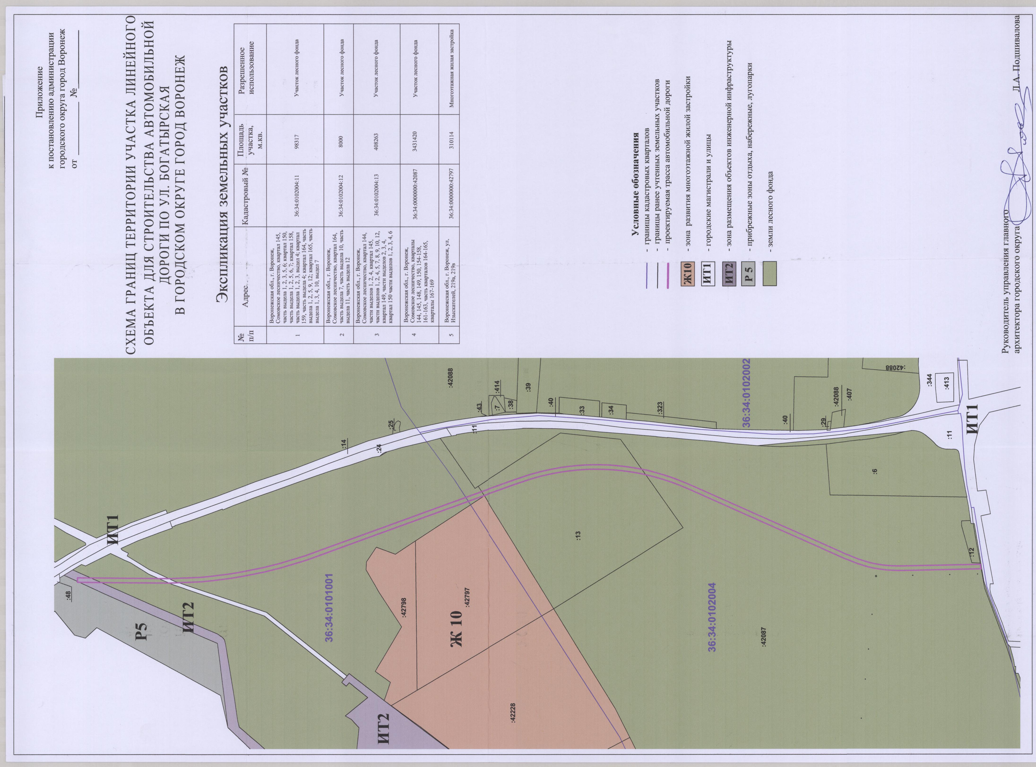 2.1. Подготовить в соответствии с утвержденным заданием документацию по планировке территории участка линейного объекта для строительства автомобильной дороги по ул. Богатырская в городском округе город Воронеж согласно прилагаемой схеме.
