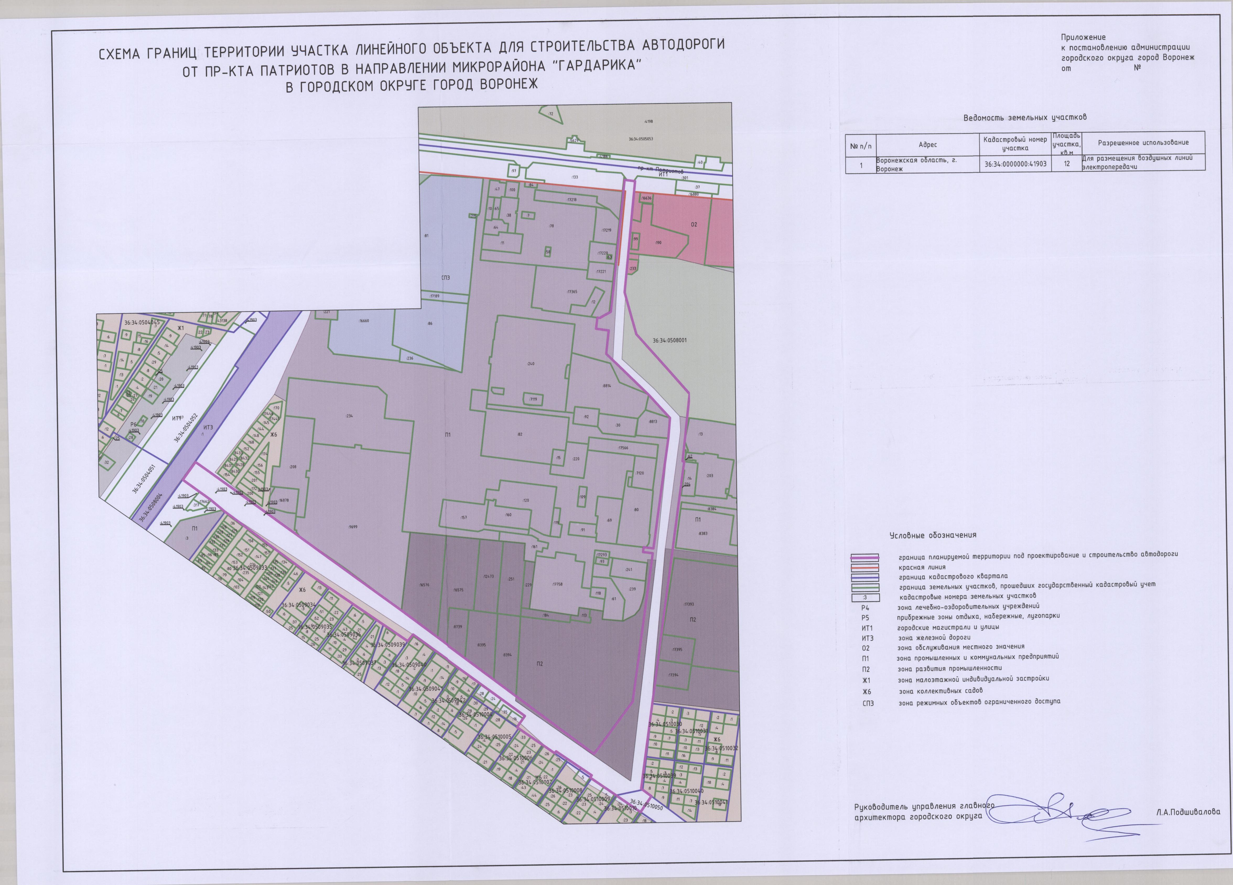 3. Схему границ территории участка линейного объекта для строительства автодороги от пр-кта Патриотов в направлении микрорайона «Гардарика» в городском округе город Воронеж изложить в новой редакции согласно приложению к настоящему постановлению.