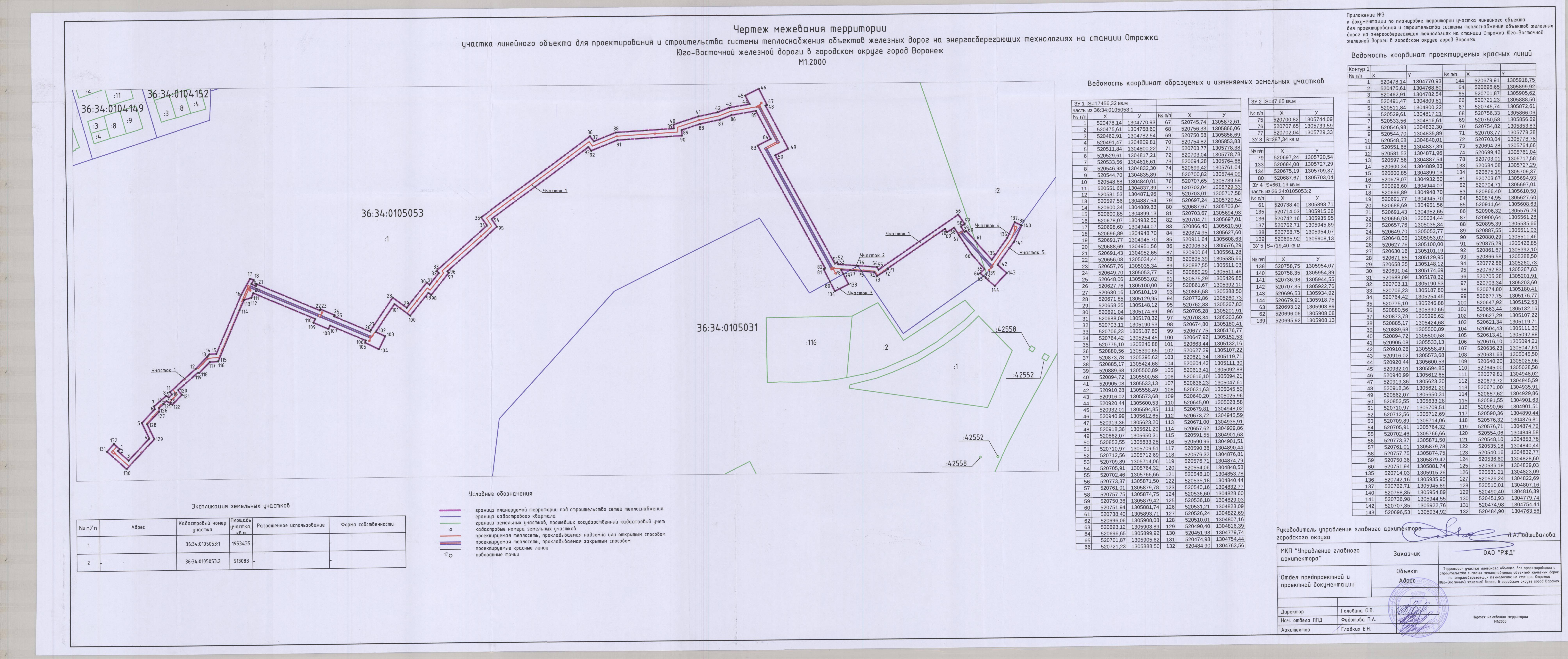 - - обеспечить размещение экспозиции демонстрационных материалов по проекту планировки территории и проекту межевания территории, подготовленным в составе документации по планировке территории участка линейного объекта для проектирования и строительства системы теплоснабжения объектов железных дорог на энергосберегающих технологиях на станции Отрожка Юго-Восточной железной дороги в городском округе город Воронеж, в зале Дома архитектора (394018, г. Воронеж, ул. Плехановская, 22) в соответствии с требованиями действующего законодательства, правовых актов городского округа город Воронеж по организации и проведению публичных слушаний;