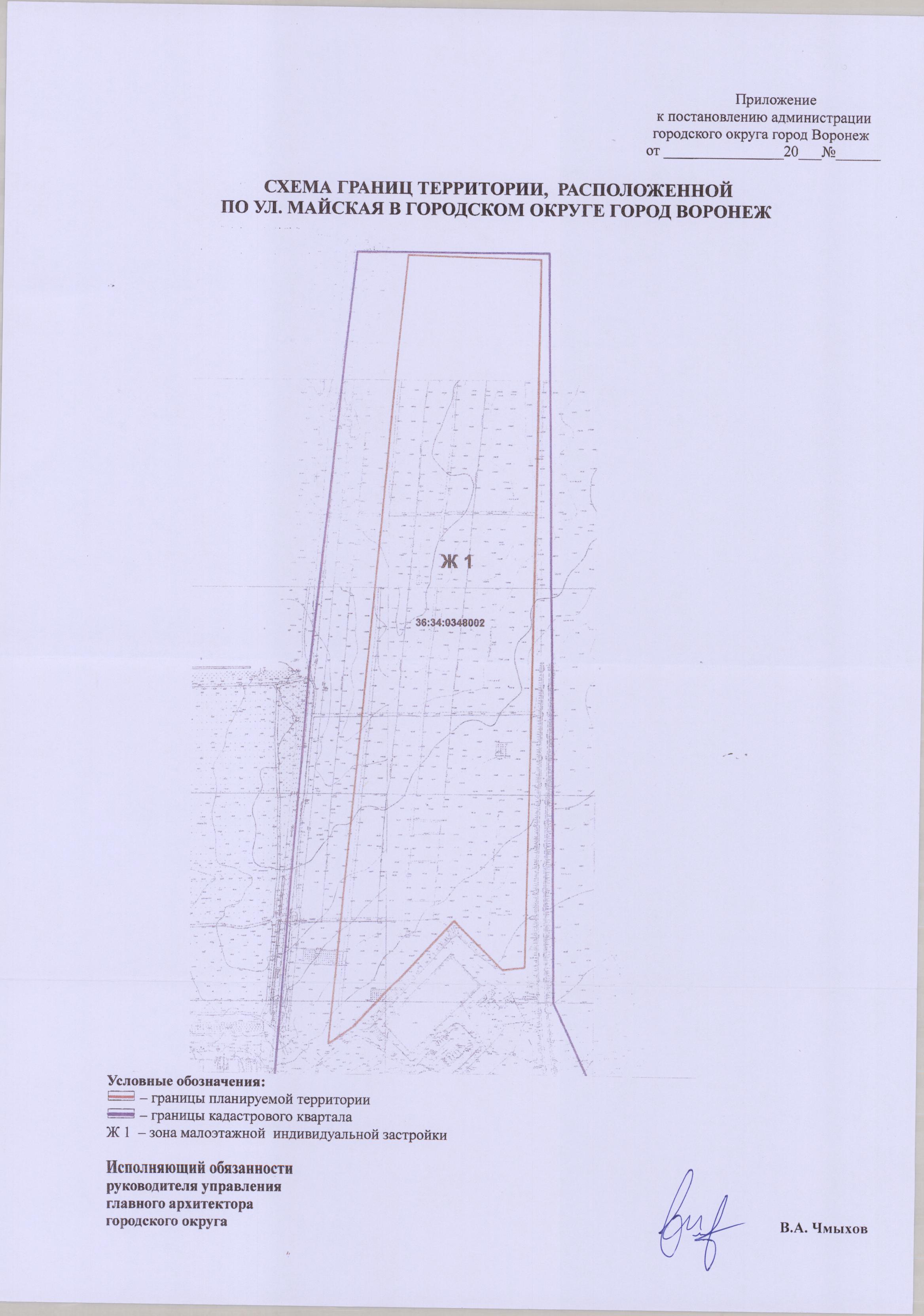 2.1. Подготовить в соответствии с утвержденным заданием документацию по планировке территории, расположенной по ул. Майская в городском округе город Воронеж, согласно прилагаемой схеме.