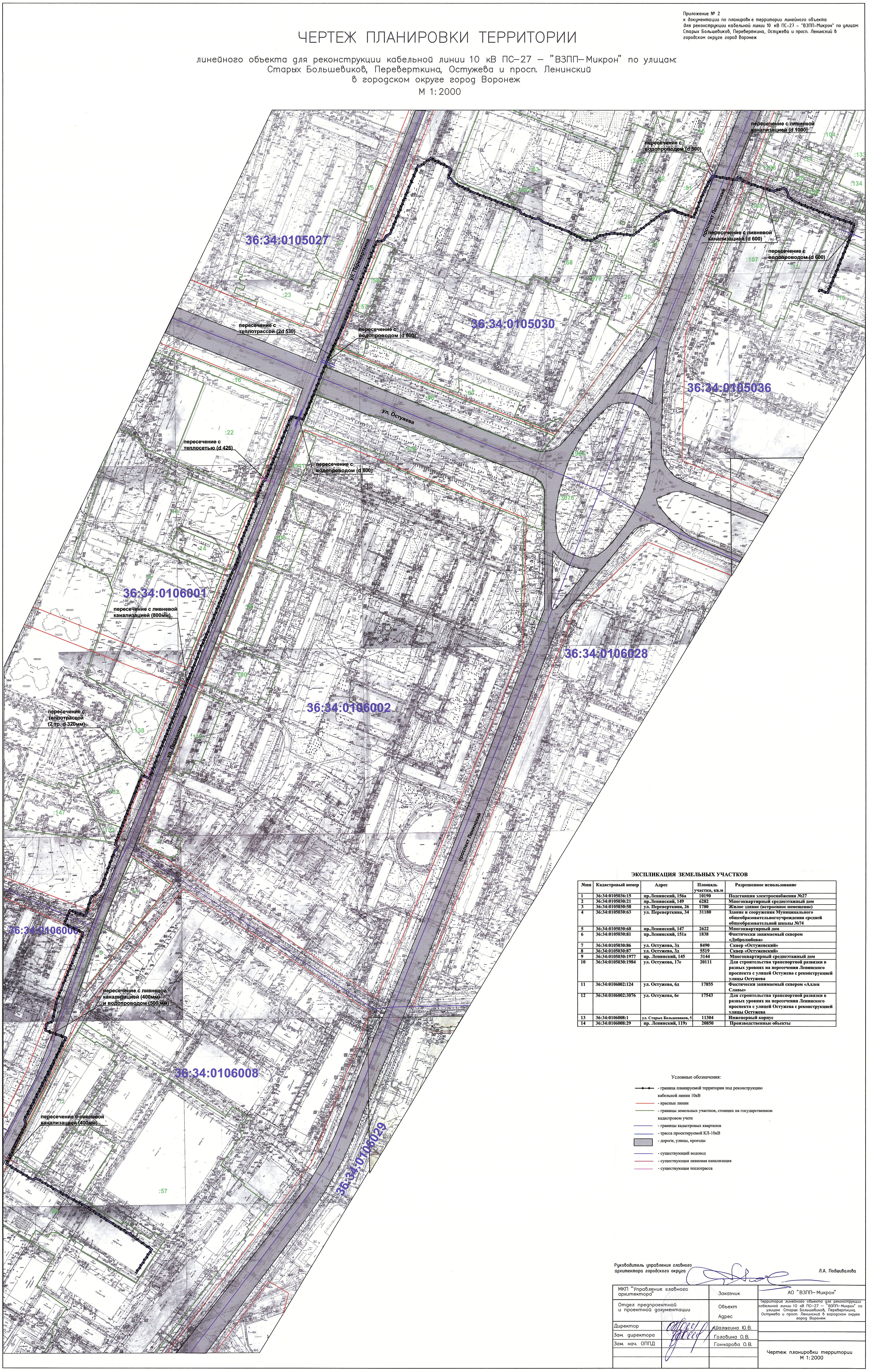 утвердить прилагаемую документацию по планировке территории линейного объекта для реконструкции кабельной линии 10 кВ ПС-27 – «ВЗПП-Микрон» по улицам: Старых Большевиков, Переверткина, Остужева и просп. Ленинский в городском округе город Воронеж.