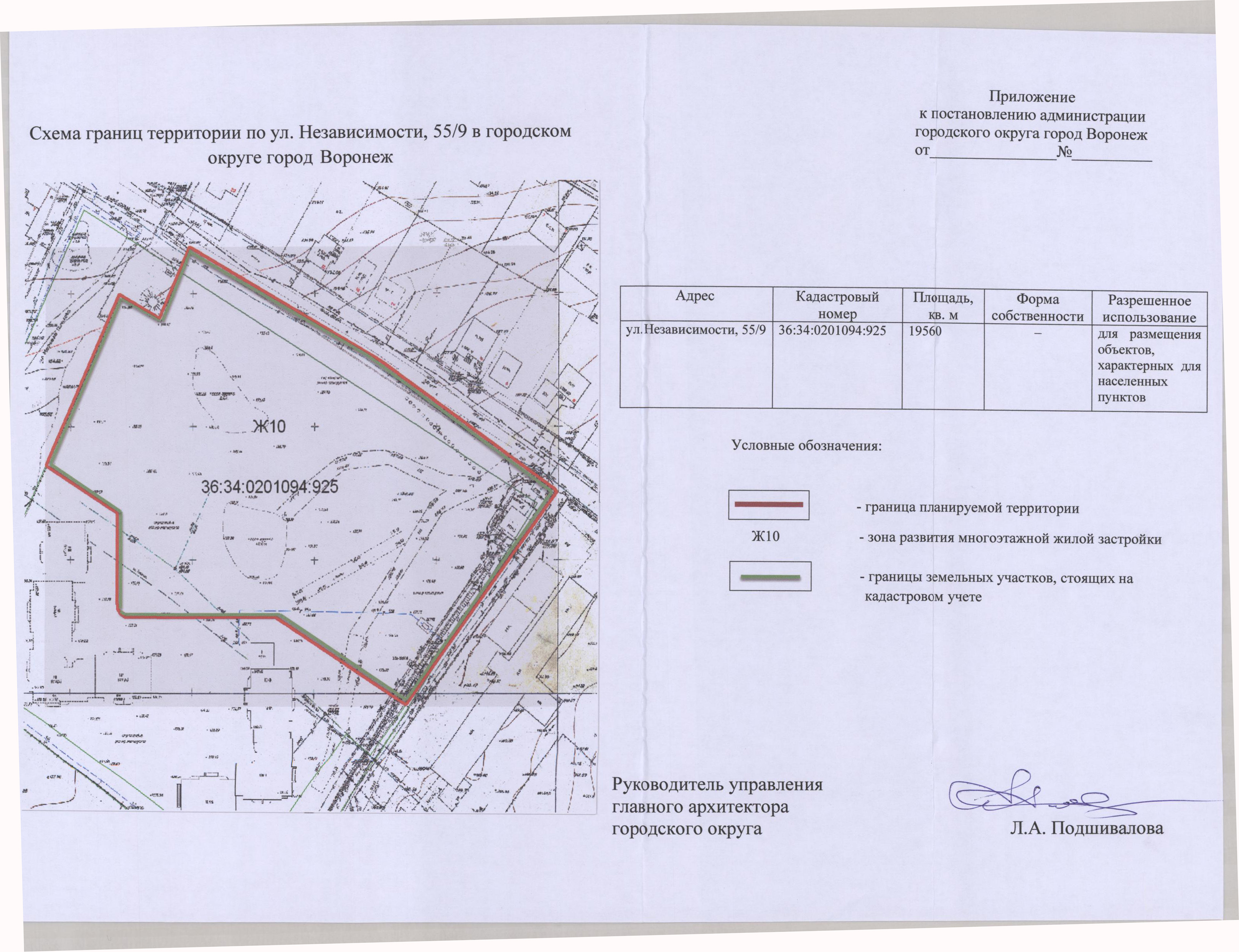 2.2. После подготовки проекта планировки территории, указанного в подпункте 2.1 настоящего постановления, представить его в управление главного архитектора городского округа администрации городского округа город Воронеж для проведения проверки на соответствие утвержденному заданию на подготовку документации по планировке территории и требованиям, установленным частью 10 статьи 45 Градостроительного кодекса Российской Федерации.