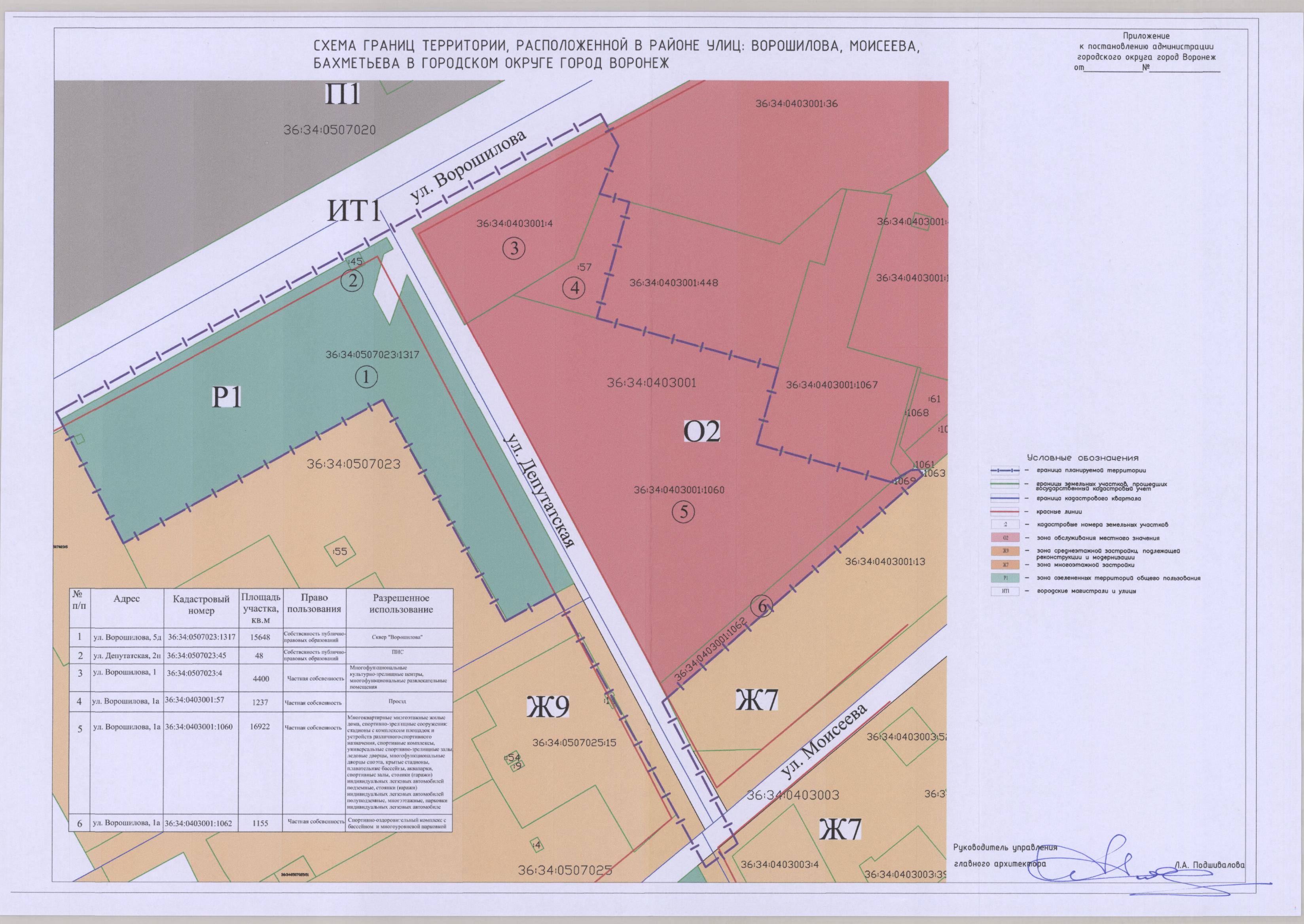 2.1. Подготовить в соответствии с утвержденным заданием, указанным в пункте 1 настоящего постановления, документацию по планировке территории, расположенной в районе улиц: Ворошилова, Моисеева, Бахметьева в городском округе город Воронеж, согласно прилагаемой схеме.