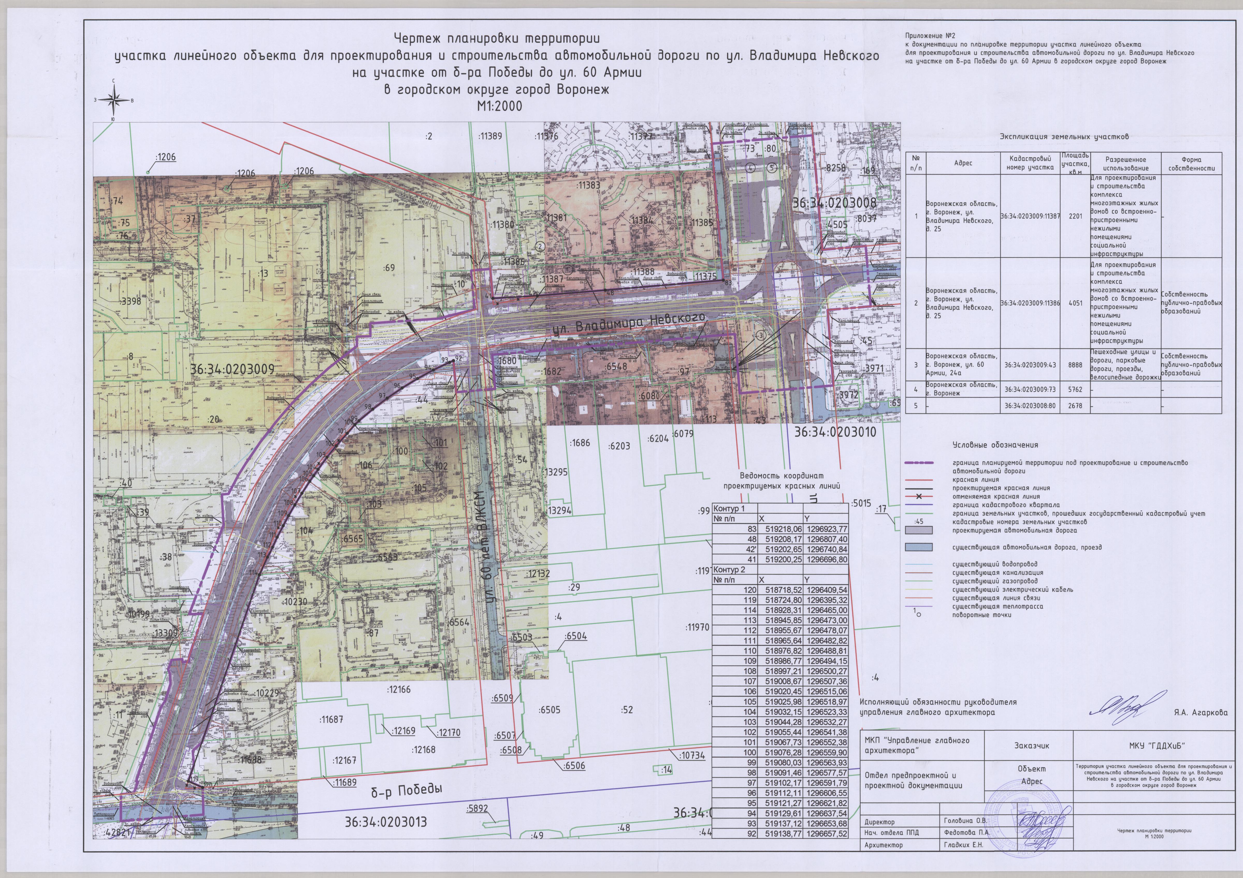 утвердить прилагаемую документацию по планировке территории участка линейного объекта для проектирования и строительства автомобильной дороги по ул. Владимира Невского на участке от б-ра Победы до ул. 60 Армии в городском округе город Воронеж.