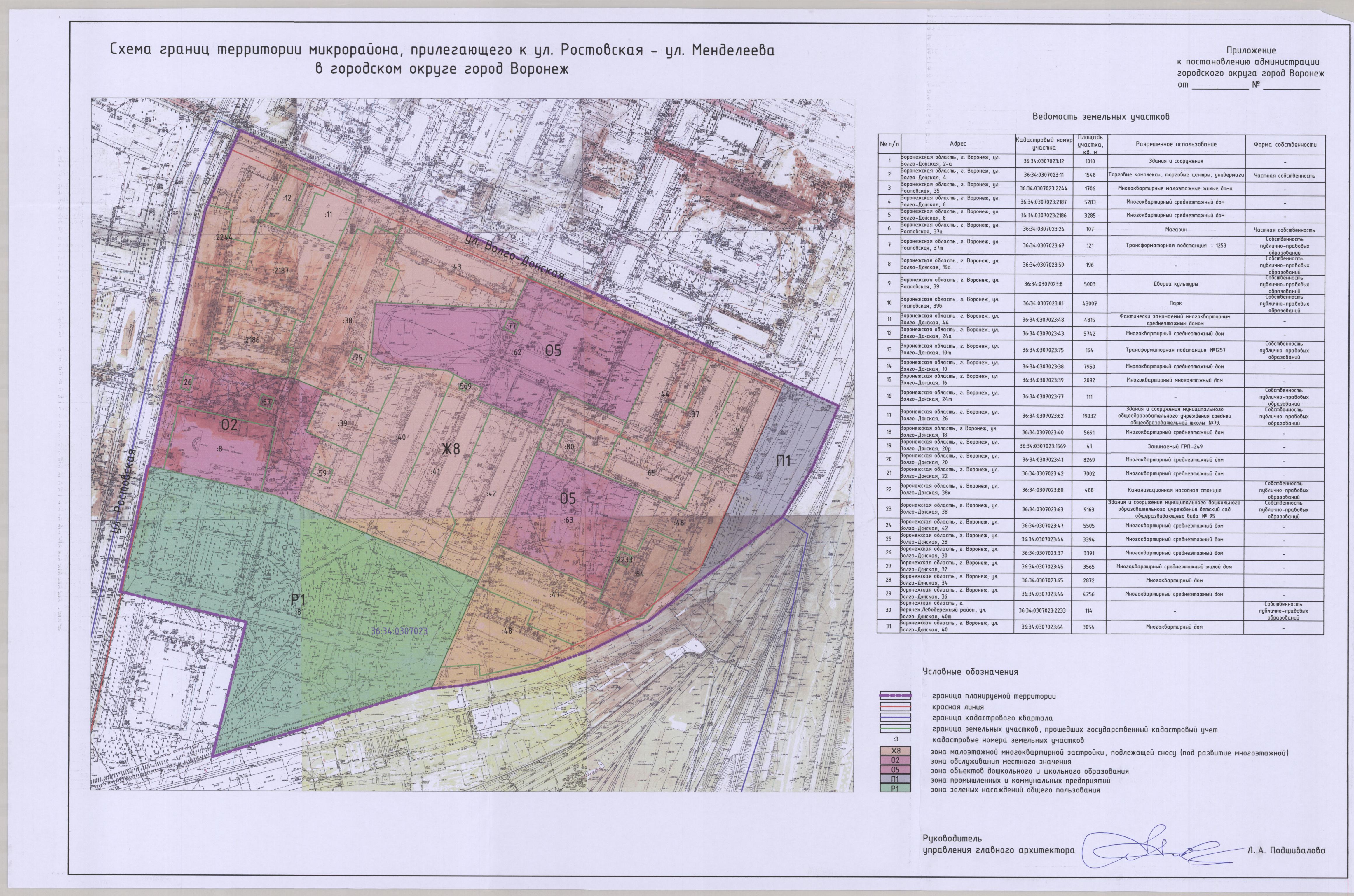 2.1. Подготовить в соответствии с утвержденным заданием, указанным в пункте 1 настоящего постановления, проект планировки микрорайона, прилегающего к ул. Ростовская – ул. Менделеева в городском округе город Воронеж, согласно прилагаемой схеме.