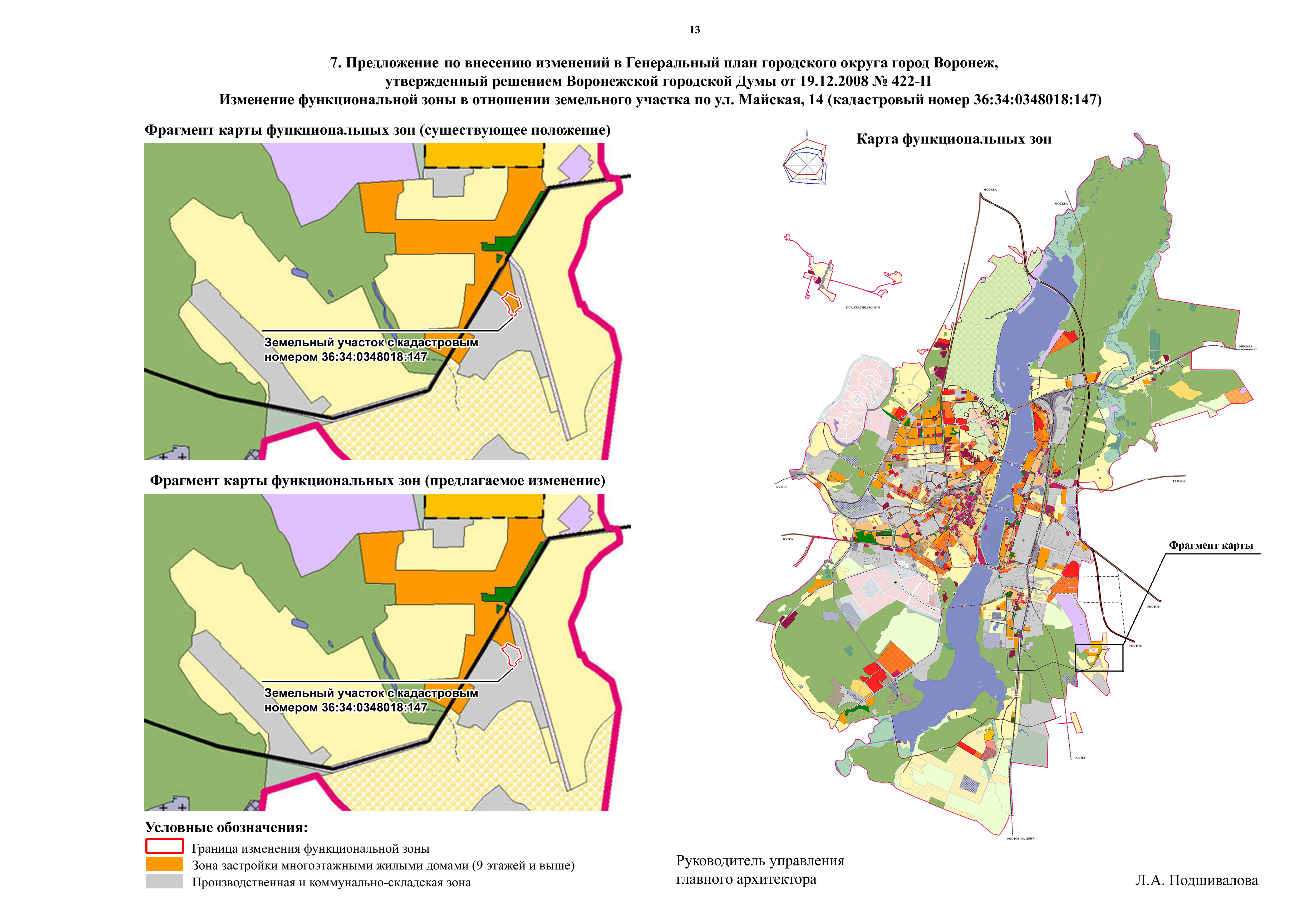 Замечания и предложения по проекту внесения изменений в Генеральный план городского округа город Воронеж для включения их в протокол публичных слушаний принимаются комиссией по землепользованию и застройке городского округа город Воронеж по 23 октября 2019 г. включительно.