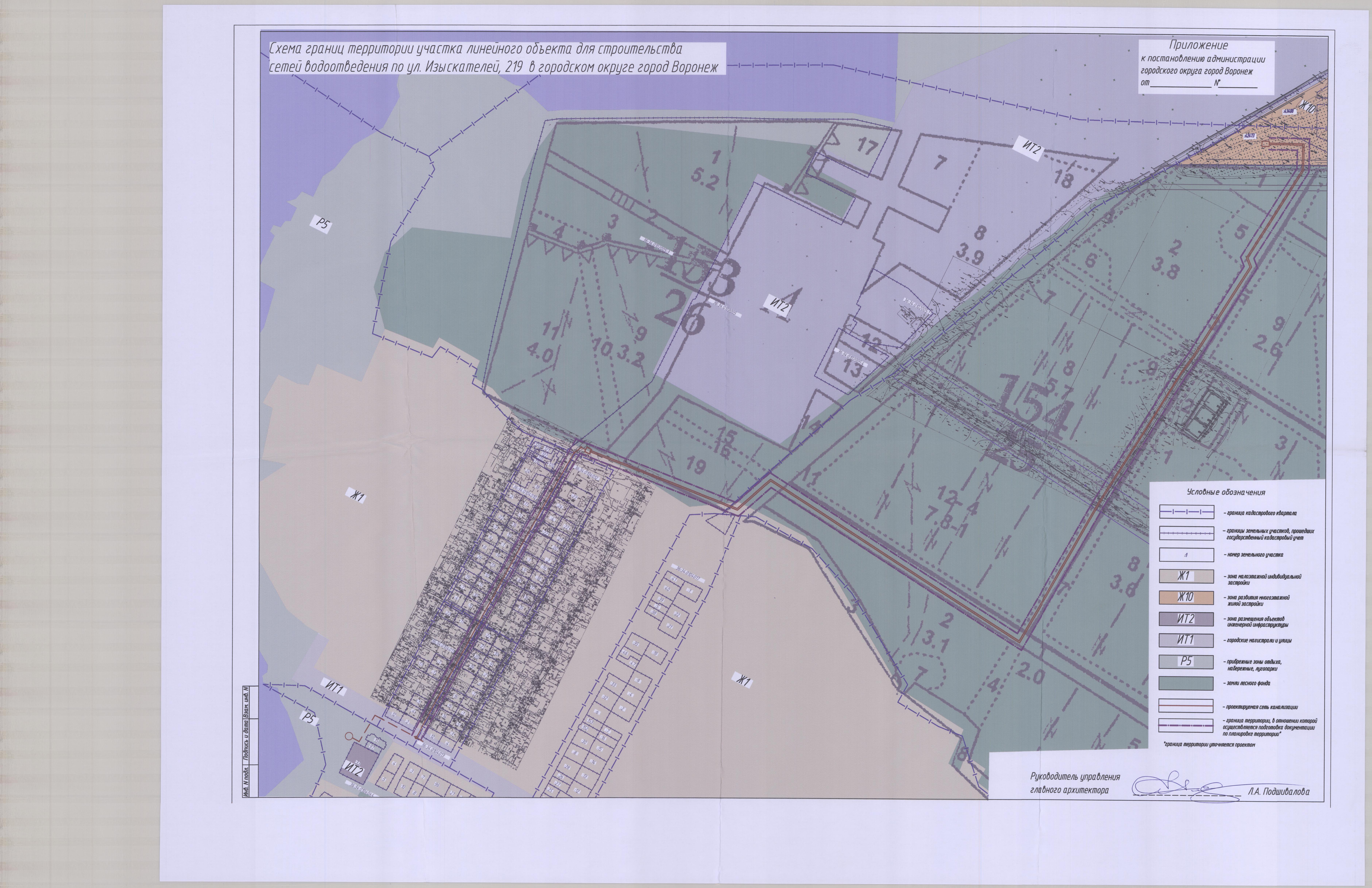 2.1. Подготовить в соответствии с утвержденным заданием документацию по планировке территории участка линейного объекта для строительства сетей водоотведения по ул. Изыскателей, 219 в городском округе город Воронеж согласно прилагаемой схеме.