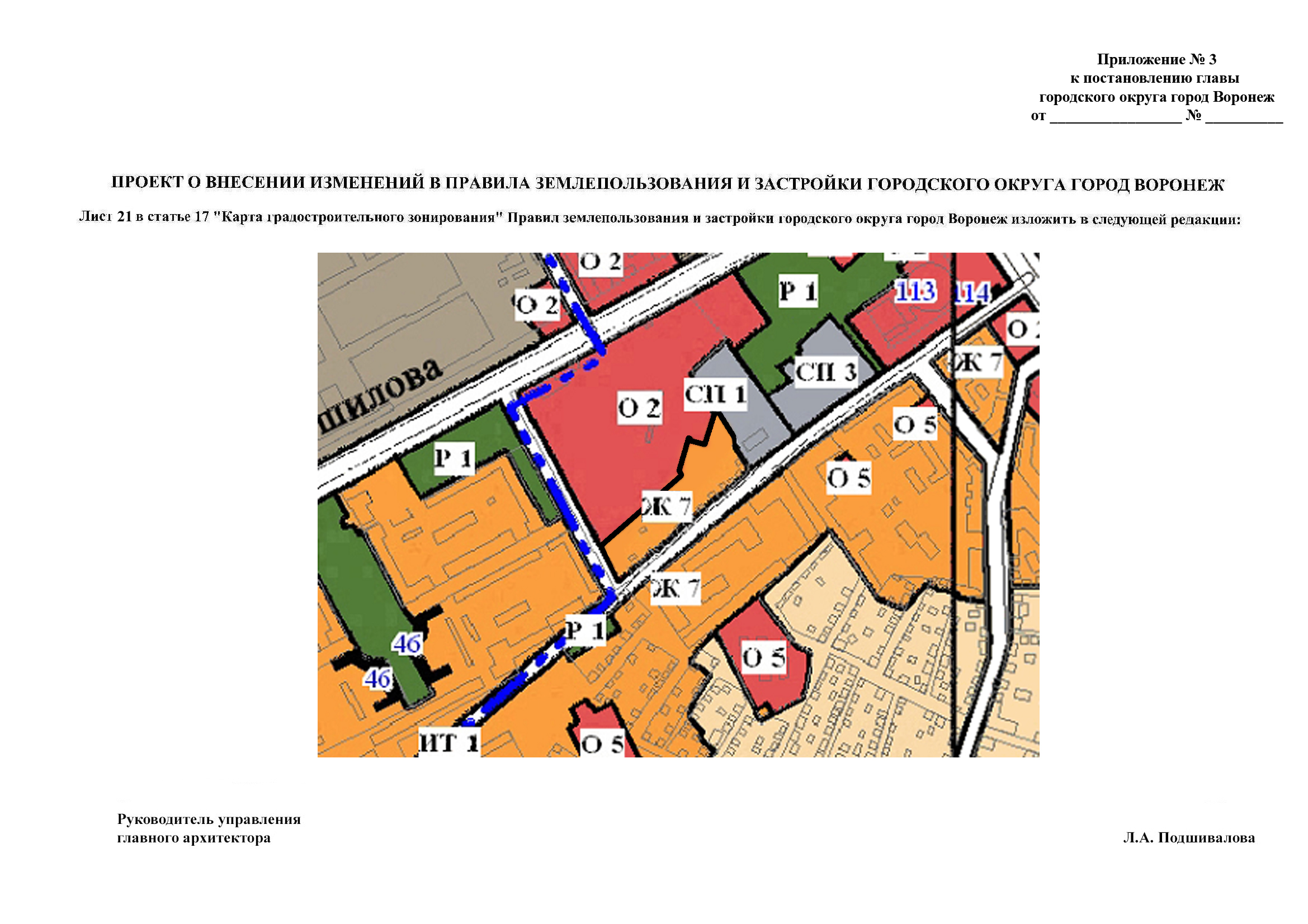 - - по проекту о внесении изменений в Правила землепользования и застройки городского округа город Воронеж в части изменения границ территориальных зон О 2 «Зона обслуживания местного значения» и Ж 7 «Многоэтажная застройка» с целью включения земельных участков по ул. Ворошилова, 1а (кадастровые номера 36:34:0403001:1061, 36:34:0403001:1062, 36:34:0403001:1063, 36:34:0403001:1064, 36:34:0403001:1065, 36:34:0403001:1068, 36:34:0403001:1069, 36:34:0403001:61) в состав территориальной зоны Ж 7 «Многоэтажная застройка».