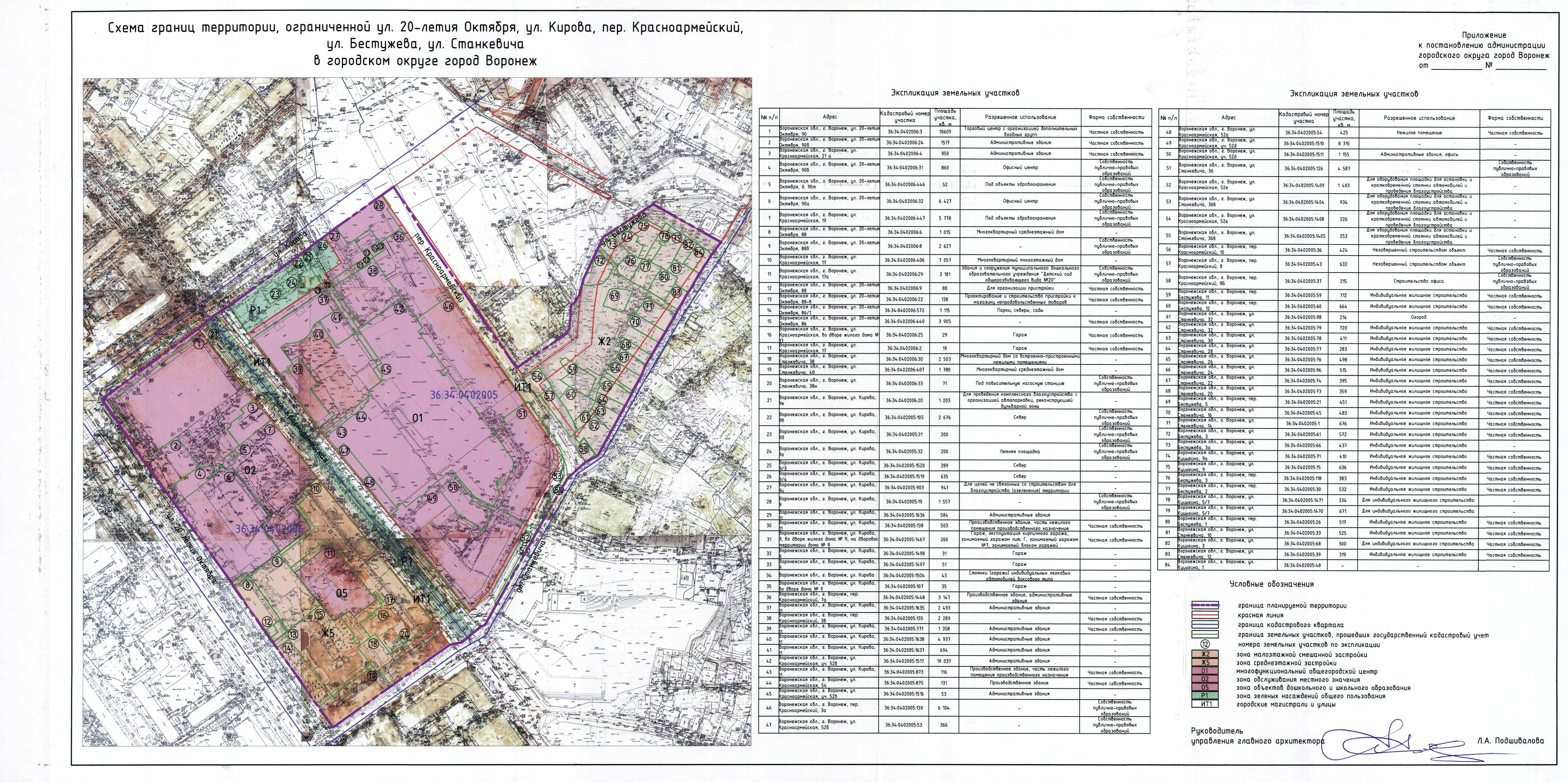 2.1. Подготовить в соответствии с утвержденным заданием, указанным в пункте 1 настоящего постановления, проект планировки территории, ограниченной ул. 20-летия Октября, ул. Кирова, пер. Красноармейский, ул. Бестужева, ул. Станкевича в городском округе город Воронеж, согласно прилагаемой схеме.