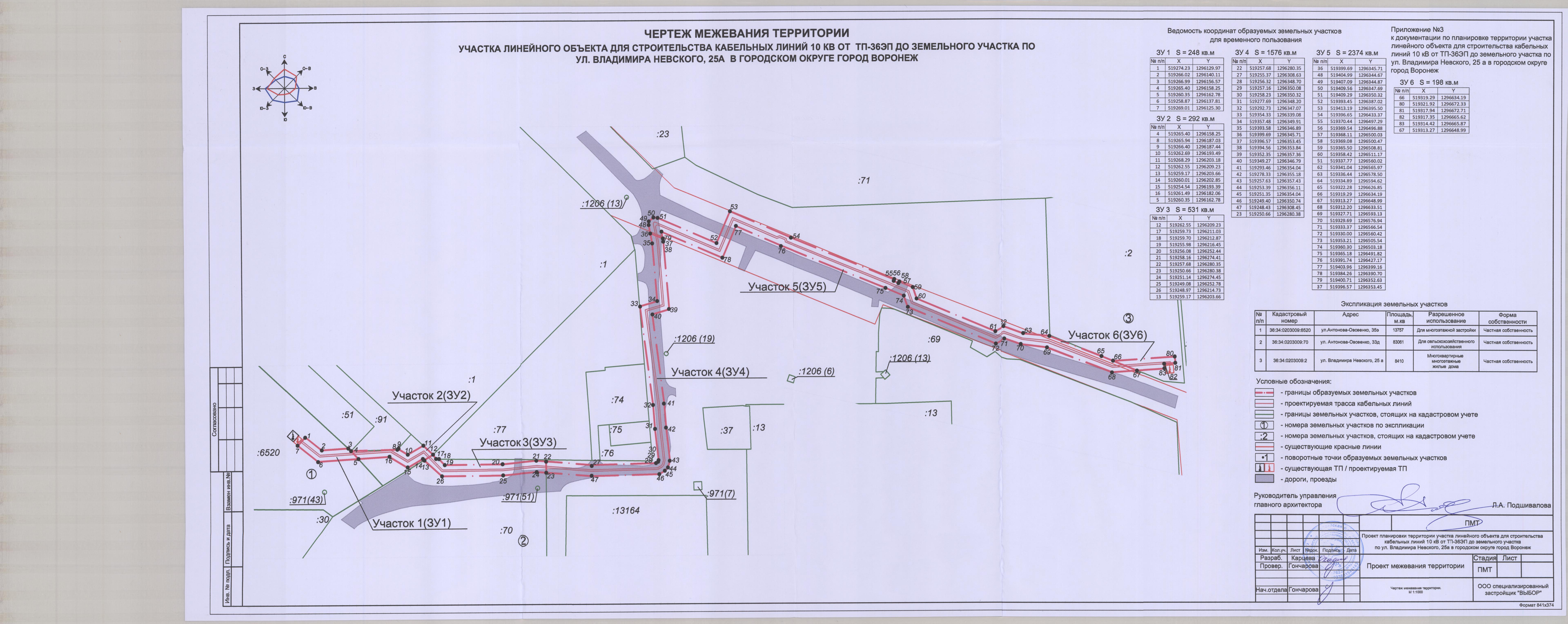 В целях реализации Генерального плана городского округа город Воронеж, утвержденного решением Воронежской городской Думы от 19.12.2008 № 422-II «Об утверждении Генерального плана городского округа город Воронеж», постановления администрации городского округа город Воронеж от 04.10.2019 № 948 «О подготовке документации по планировке территории участка линейного объекта для строительства кабельных линий 10 кВ от ТП-36ЭП до земельного участка по ул. Владимира Невского, 25а в городском округе город Воронеж», на основании заявления Общества с ограниченной ответственностью специализированный застройщик «ВЫБОР-СЕВЕР» (ИНН 3662274993), решения Воронежской городской Думы от 08.07.2011 № 501-III «О порядке подготовки документации по планировке территории, разрабатываемой на основании решений органов местного самоуправления городского округа город Воронеж», Правил землепользования и застройки городского округа город Воронеж, утвержденных решением Воронежской городской Думы от 25.12.2009 № 384-II «Об утверждении Правил землепользования и застройки городского округа город Воронеж», в соответствии со статьей 46 Градостроительного кодекса Российской Федерации, статьей 28 Федерального закона от 06.10.2003 № 131-ФЗ «Об общих принципах организации местного самоуправления в Российской Федерации», статьей 46 Устава городского округа город Воронеж, принятого постановлением Воронежской городской Думы от 27.10.2004 № 150-I «Об Уставе городского округа город Воронеж», Положением о порядке организации и проведения публичных слушаний по вопросам градостроительной деятельности в городском округе город Воронеж, утвержденным решением Воронежской городской Думы от 27.06.2018 № 882-IV «Об утверждении Положения о порядке организации и проведения публичных слушаний по вопросам градостроительной деятельности в городском округе город Воронеж», глава городского округа город Воронеж постановляет: