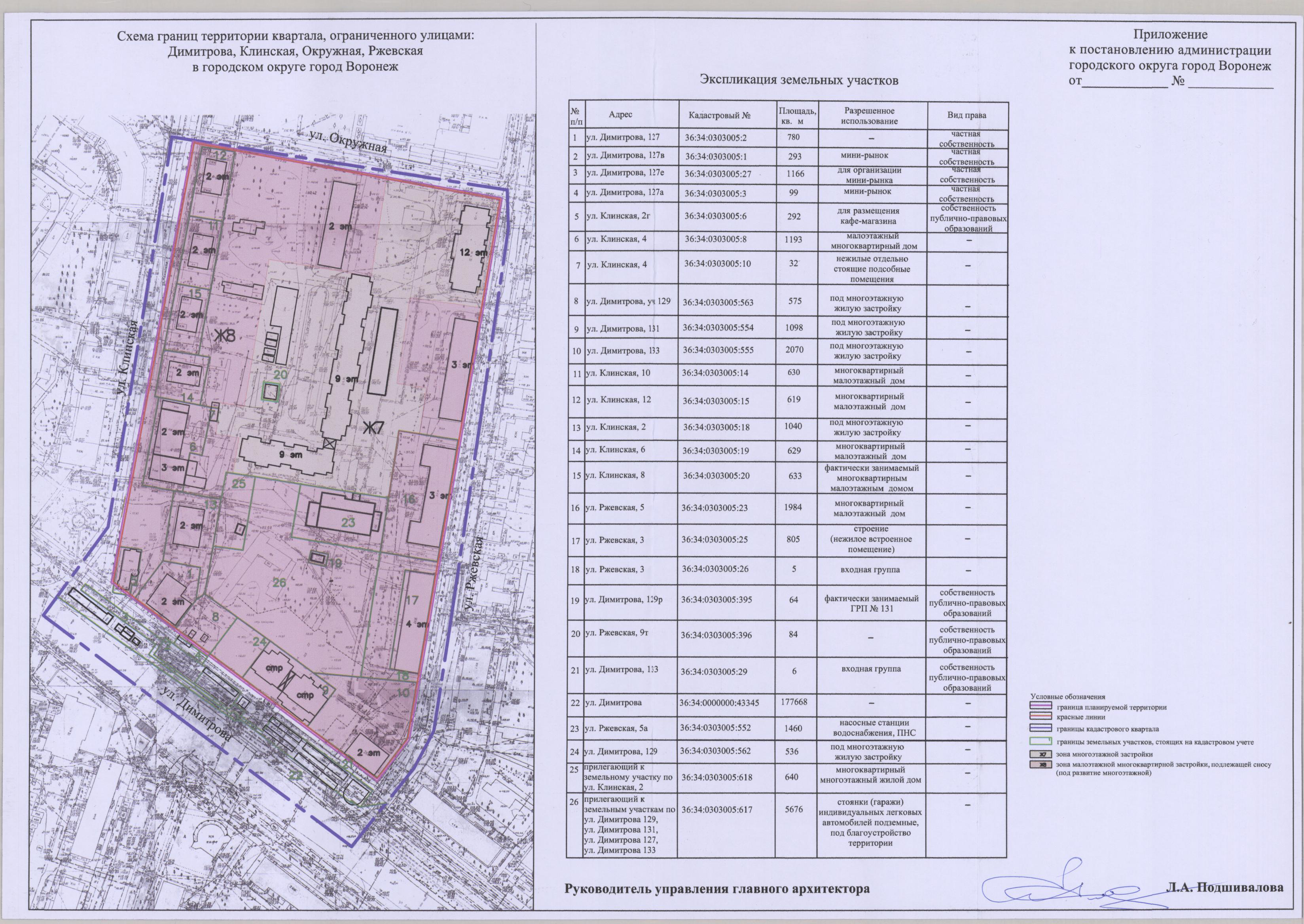 в документацию по планировке территории квартала, ограниченного улицами: Димитрова, Клинская, Окружная, Ржевская в городском округе город Воронеж