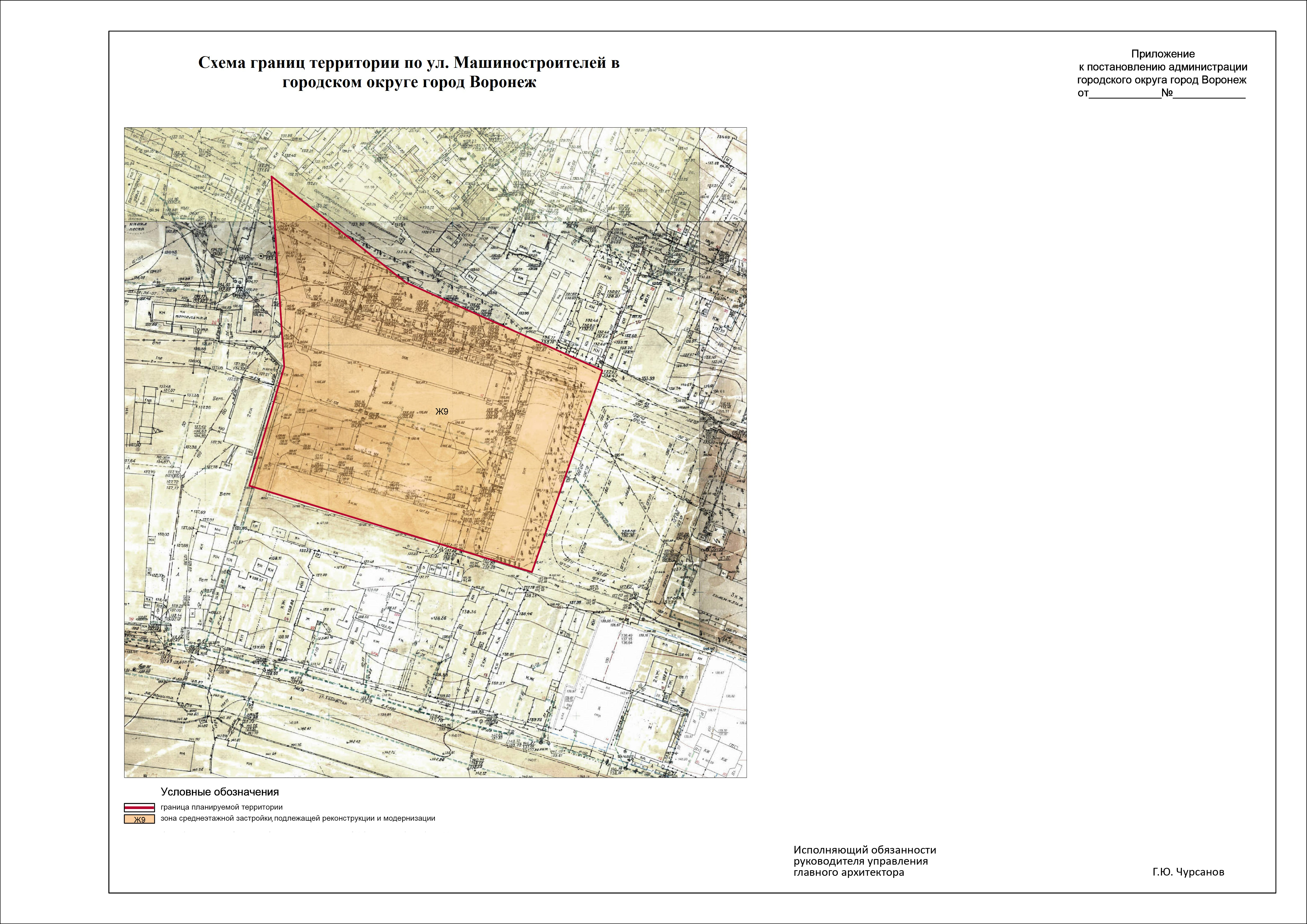 2.1. Организовать подготовку в соответствии с утвержденным заданием, указанным в пункте 1 настоящего постановления, проекта межевания территории по ул. Машиностроителей в городском округе город Воронеж согласно прилагаемой схеме.