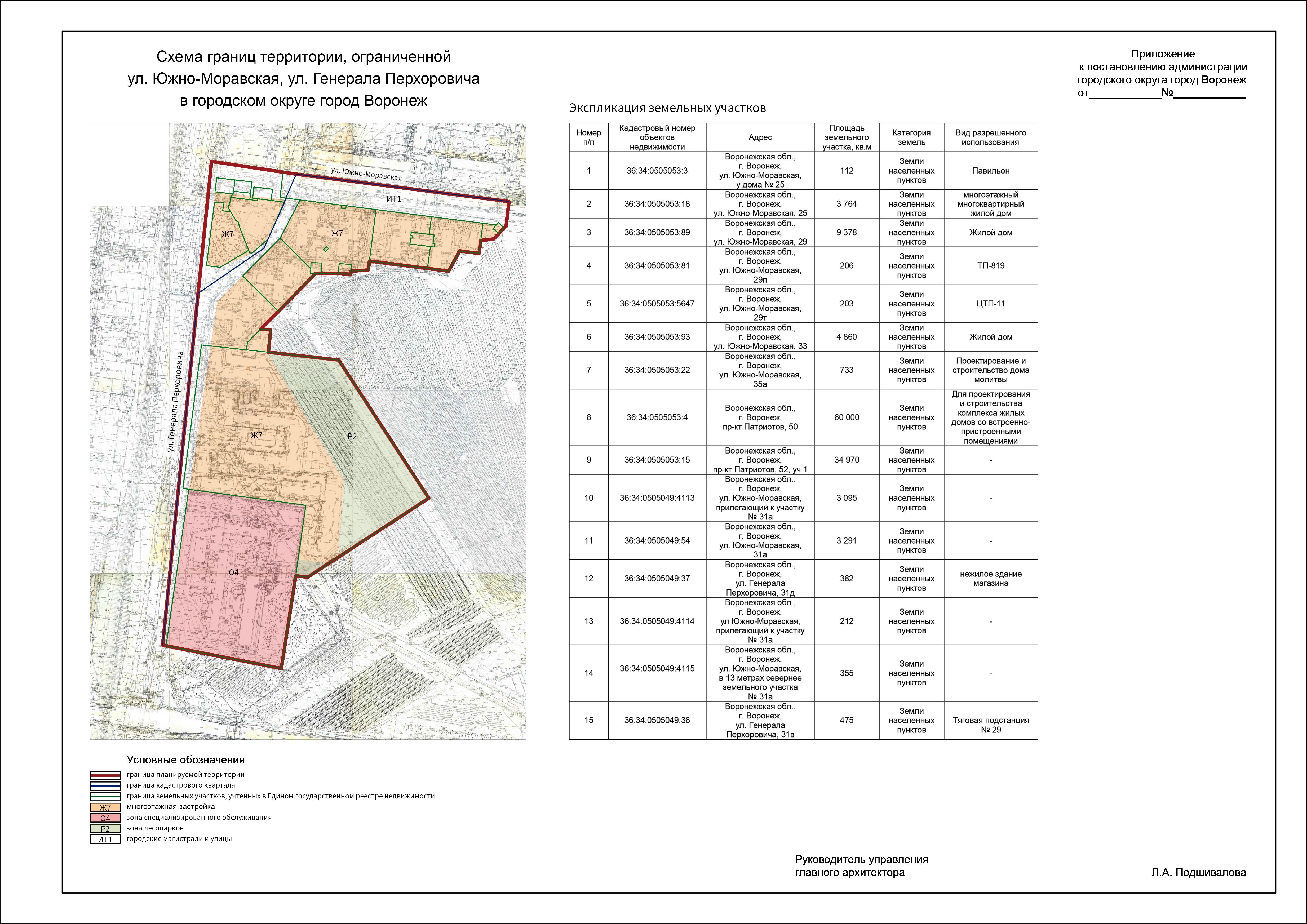 1. Утвердить прилагаемое задание на подготовку документации по планировке территории, ограниченной ул. Южно-Моравская, ул. Генерала Перхоровича в городском округе город Воронеж.