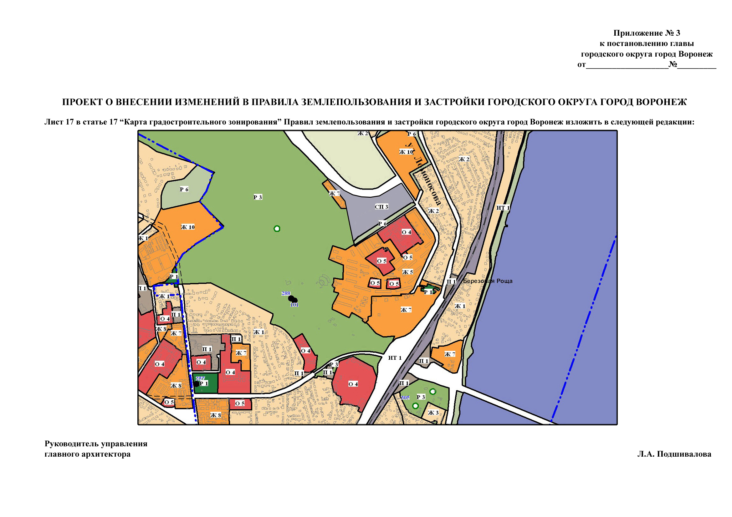 - - по проекту о внесении изменений в Правила землепользования и застройки городского округа город Воронеж в части изменения границ территориальных зон ИТ 1 (городские магистрали и улицы) и СП 3 (зона режимных объектов ограниченного доступа) с целью включения земельного участка, расположенного по ул. Шишкова, 140б, участок 3 (кадастровый номер 36:34:0602001:21316), в состав территориальной зоны СП 3.